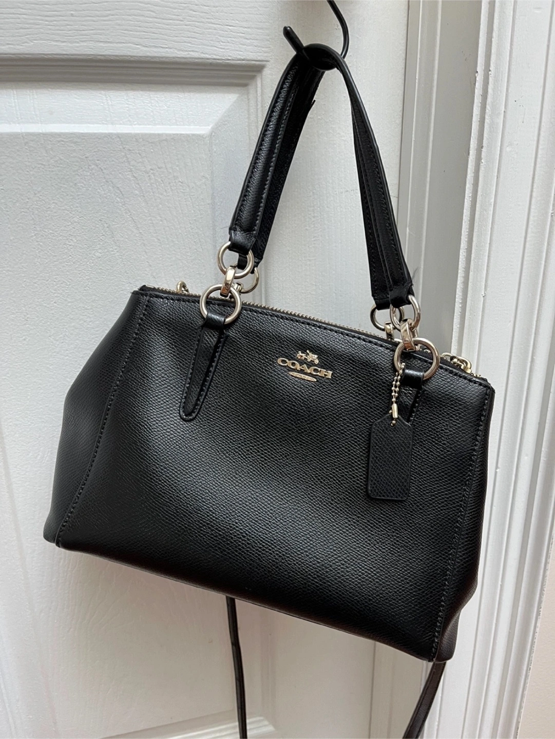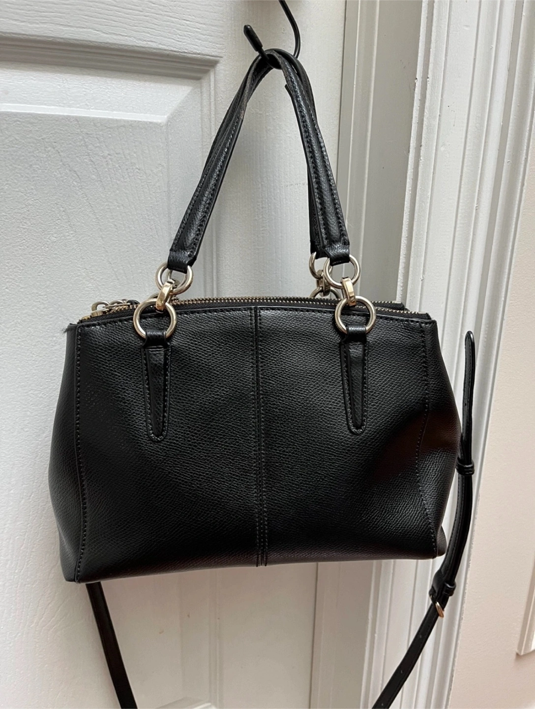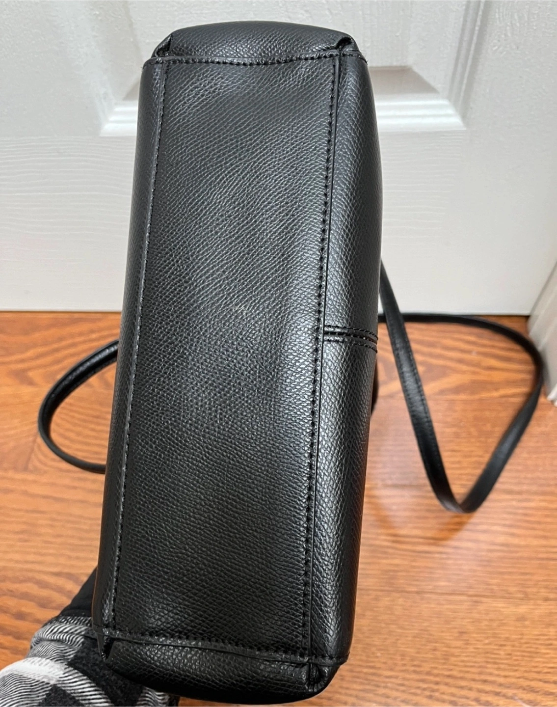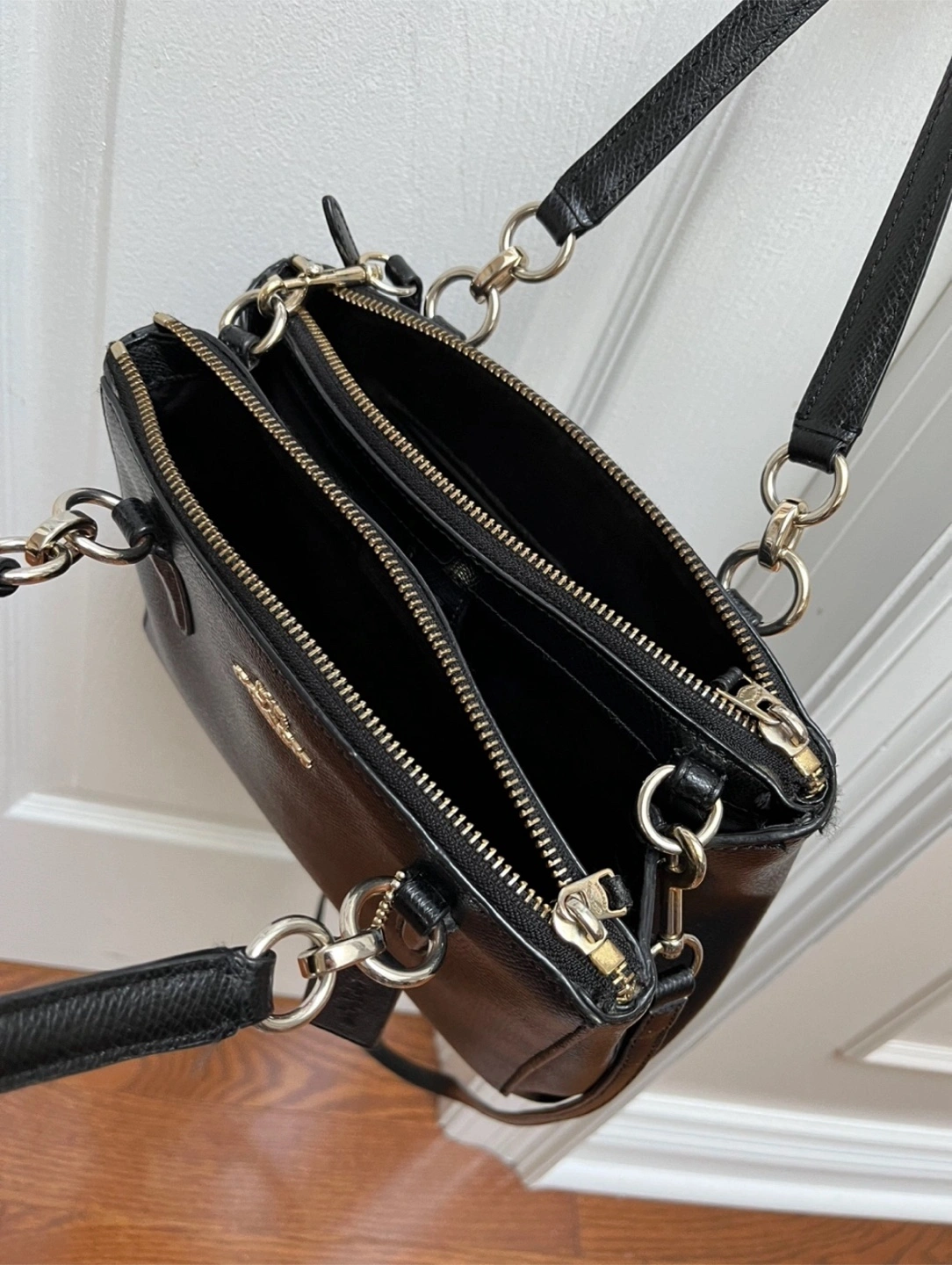 Two top handles and a detachable crossbody strap. Double zipper closure.