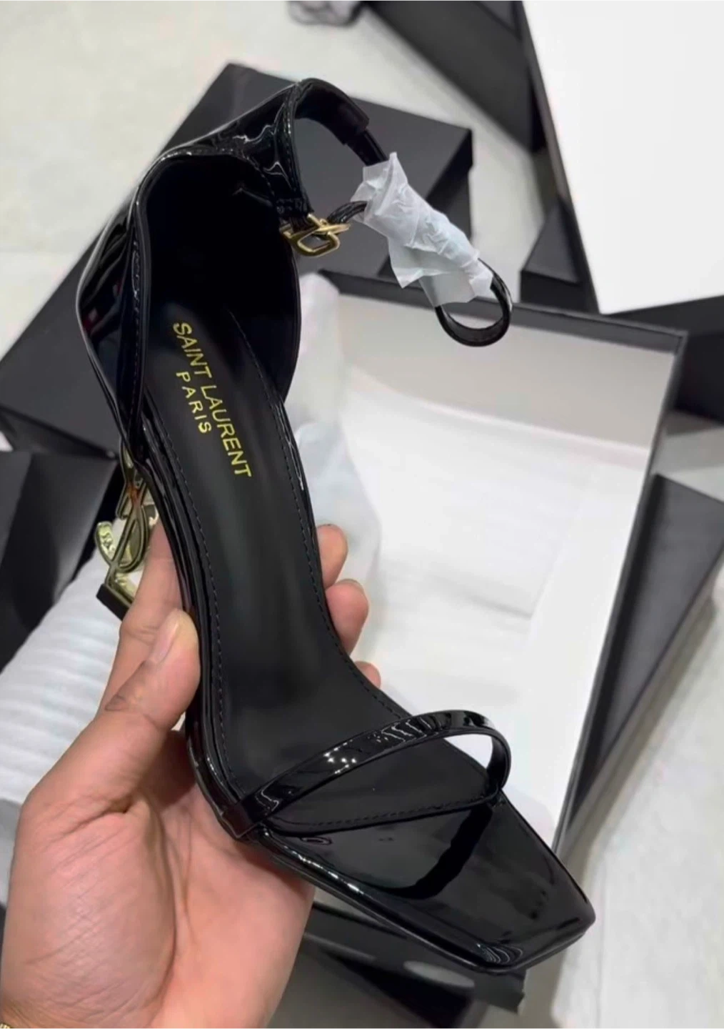 Black patent leather Saint Laurent Opyum heels with gold YSL logo heel. Doesn’t Comes with original box and dust bag. Women's size 7.