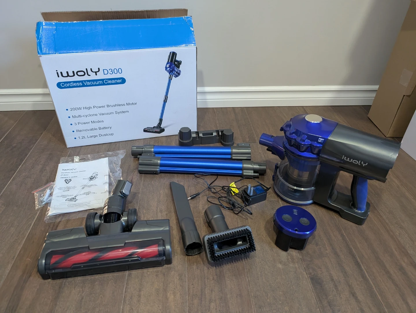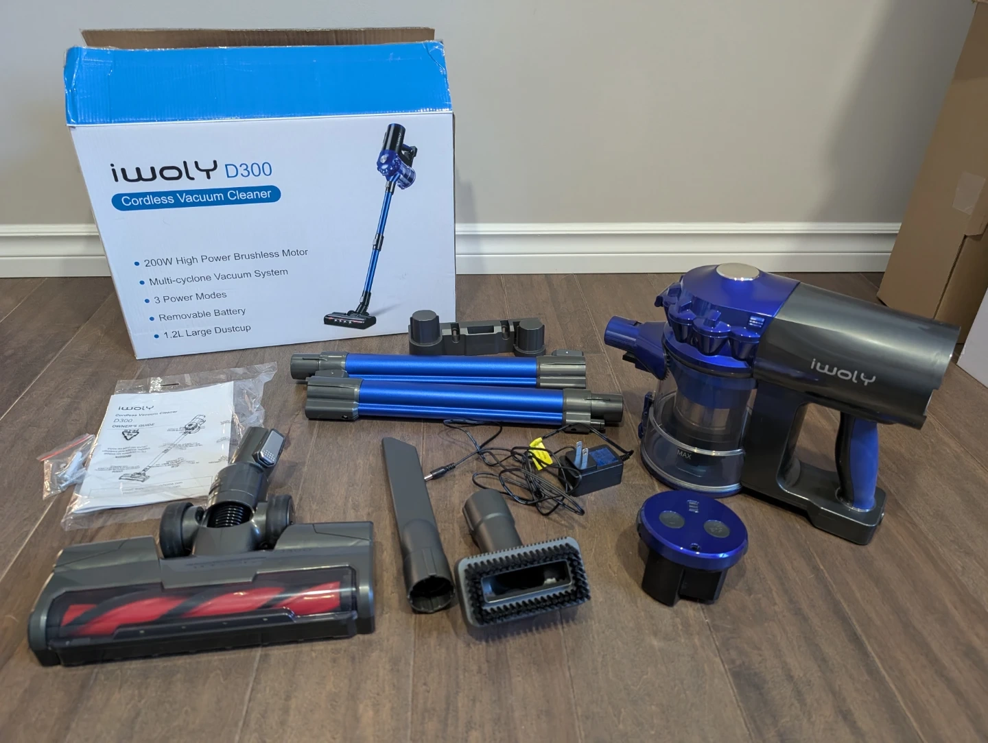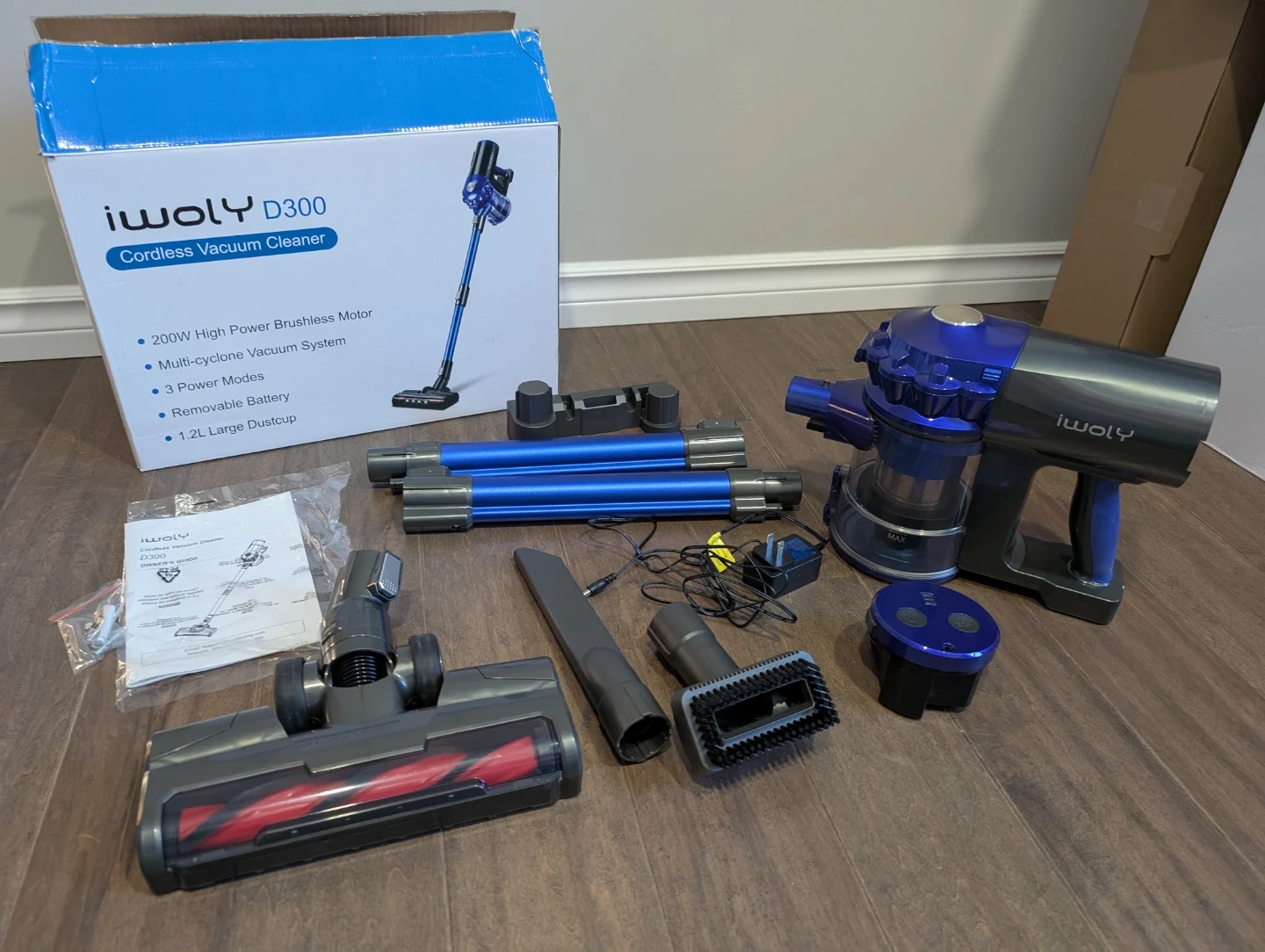Like new Iwoly D300 cordless vacuum for sale. 28Kpa, 38 minutes run time, powerful stick vacuum, detachable battery, 2 modes, HEPA filter, dust cup, for hardwood floors, carpet, pet hair, tile, $80 FIRM.