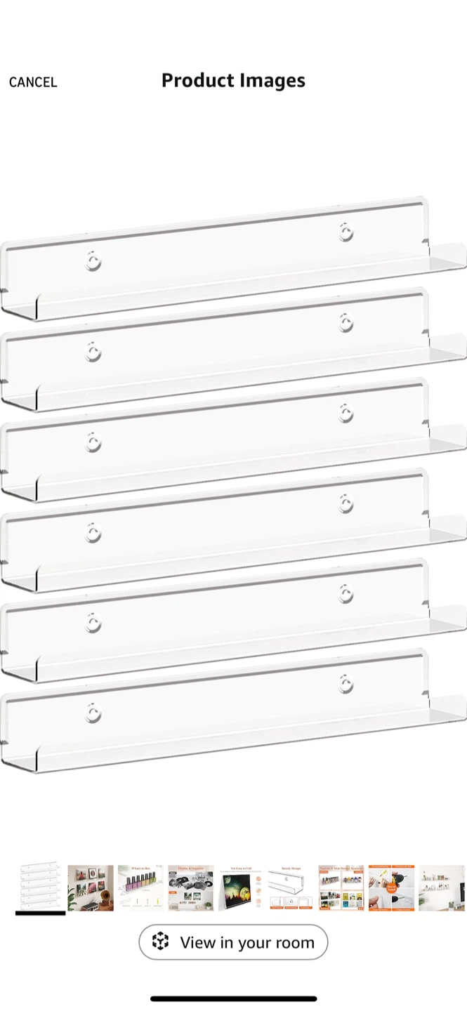 Selling a set of 6 clear acrylic wall shelves! They're perfect for displaying small items.