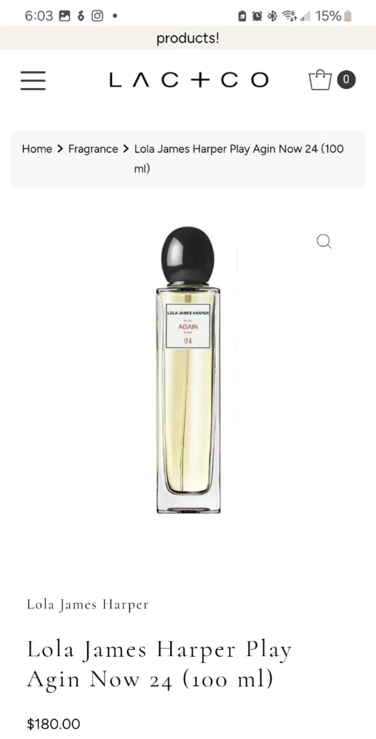 This is Lola James Harper Play Agin Now 24 Eau de Toilette. It's a woody and sweet fragrance.
