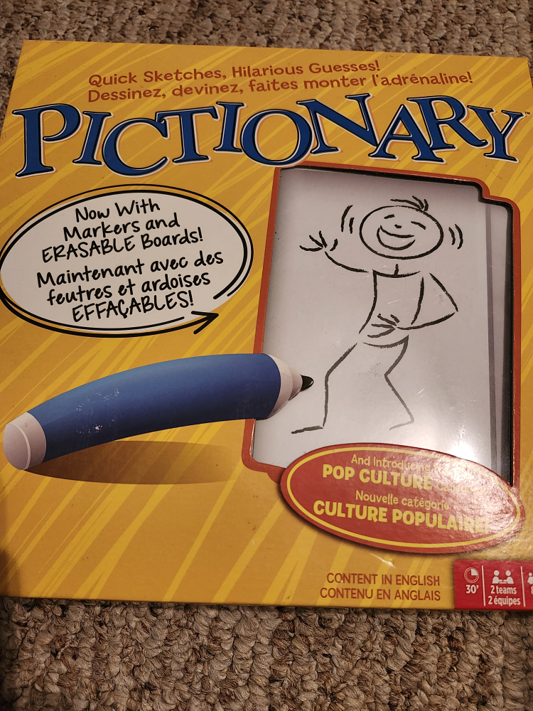 Pictionary: Quick sketches and hilarious guesses! Now with markers and erasable boards!