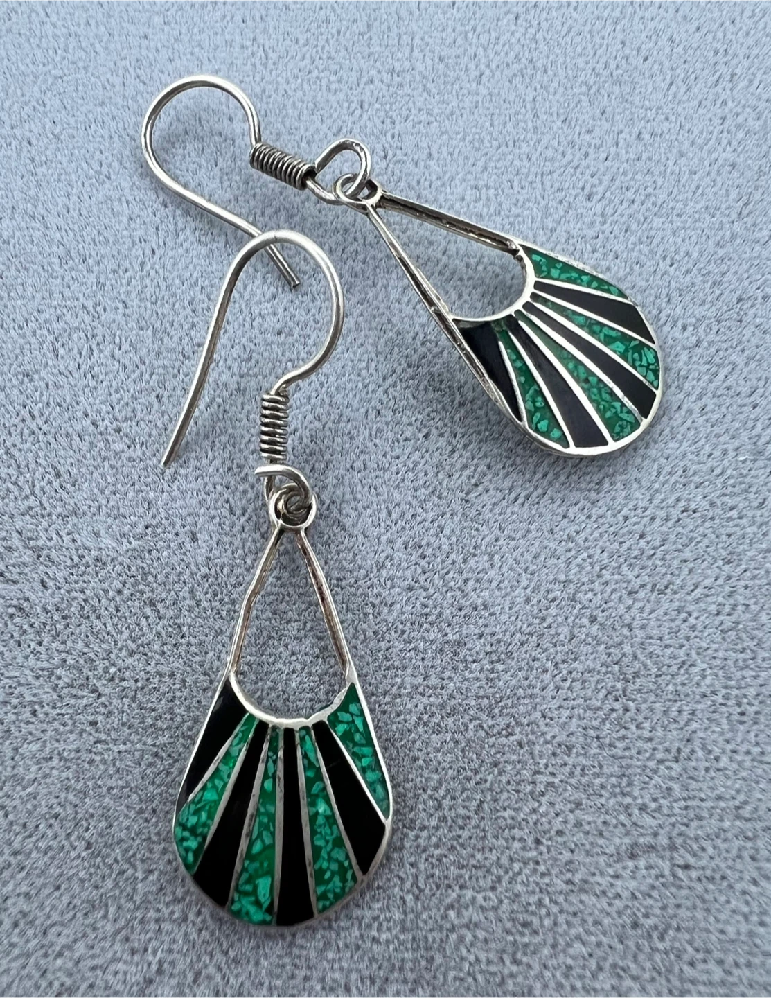 Inlaid with crushed malachite and sleek black onyx
