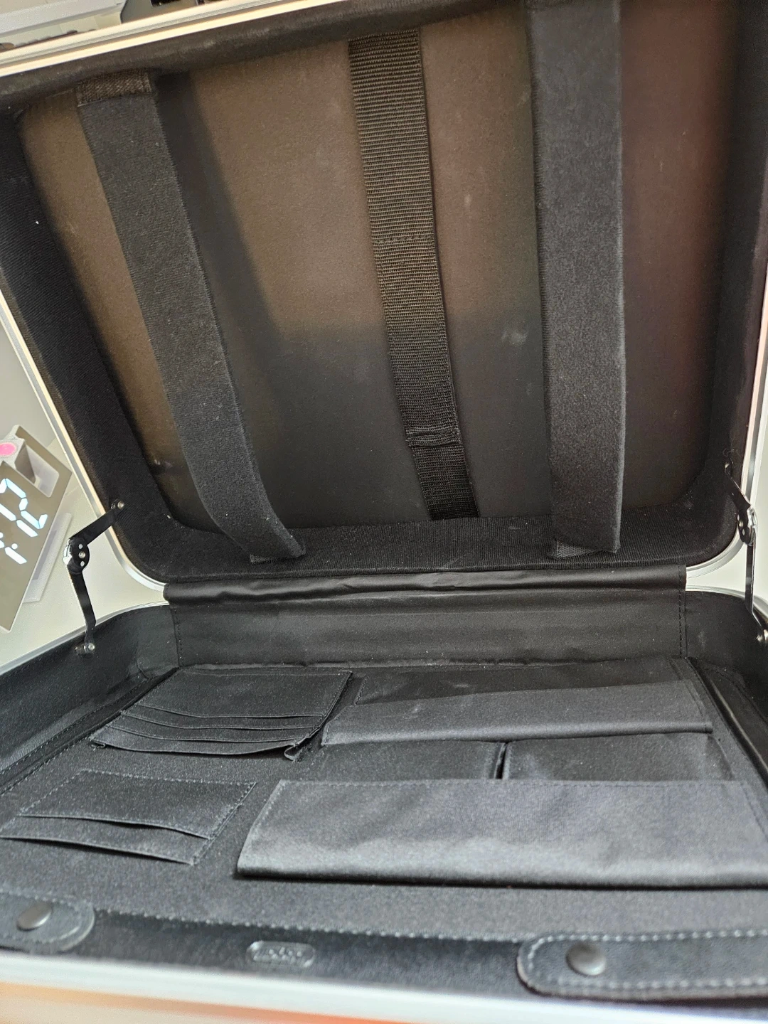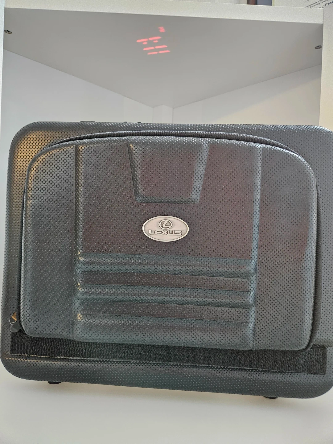 Selling a black Lexus rolling suitcases for laptop. It has a textured exterior and a combination lock for security. The interior is lined with fabric and has multiple compartments for organization. Great for travel! Size 45×35×20