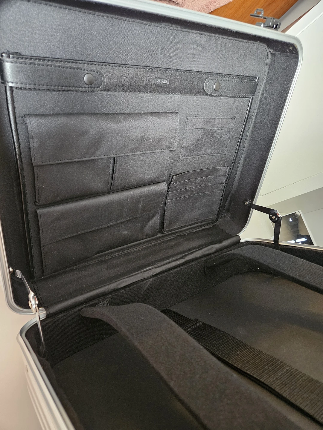 Selling a black Lexus rolling suitcases for laptop. It has a textured exterior and a combination lock for security. The interior is lined with fabric and has multiple compartments for organization. Great for travel! Size 45×35×20