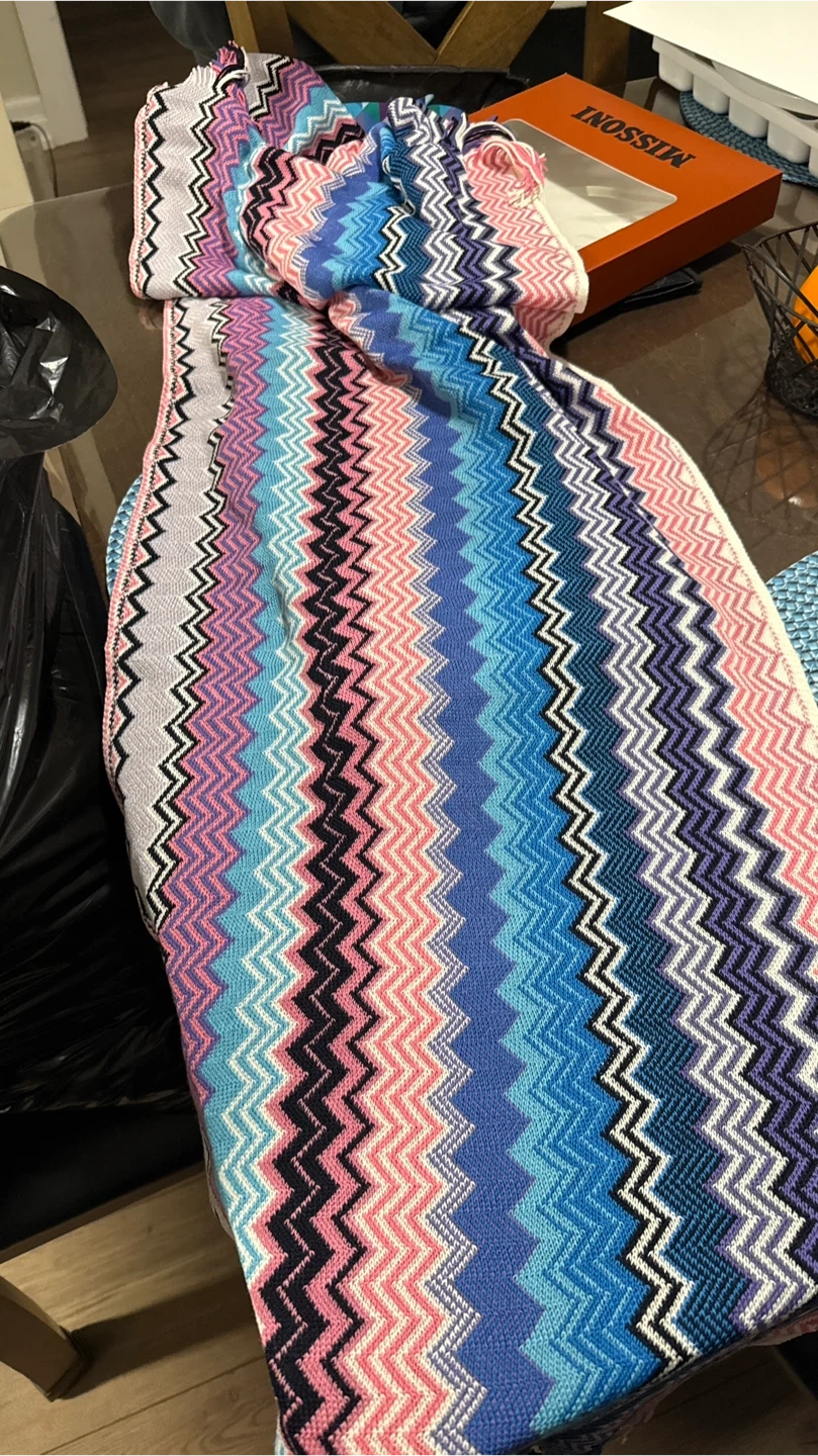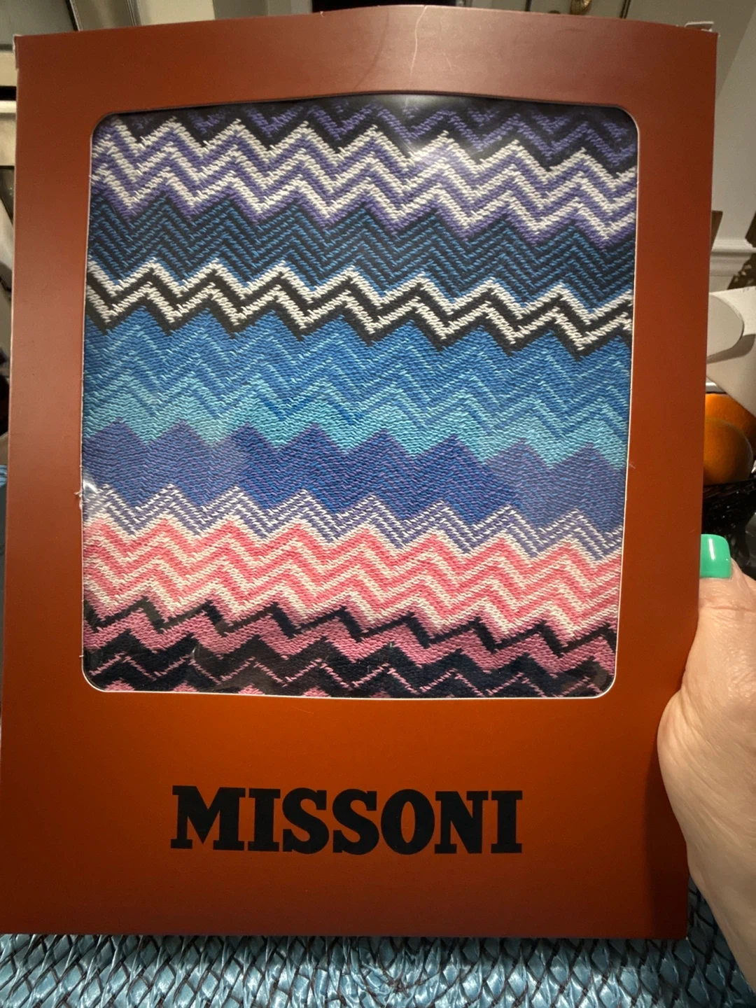 Authentic Missoni scarf with their signature zig-zag pattern. It's made of a wool blend. This scarf is perfect for adding a pop of colour to any outfit!