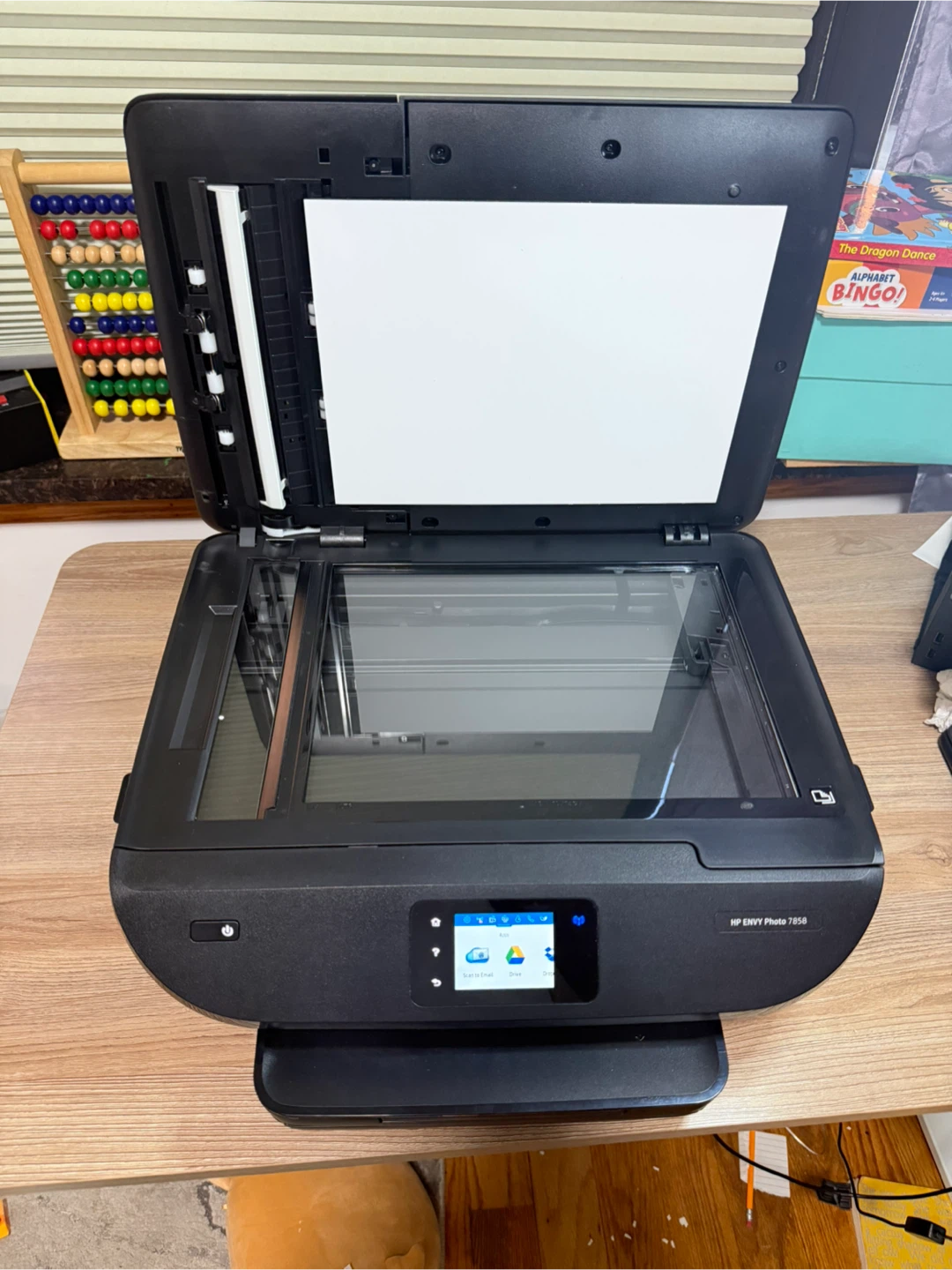 Selling a used HP Envy Photo 7858 all-in-one printer. It's in good working condition and ready for a new home office or creative space! This printer offers printing, scanning, and copying functionalities.