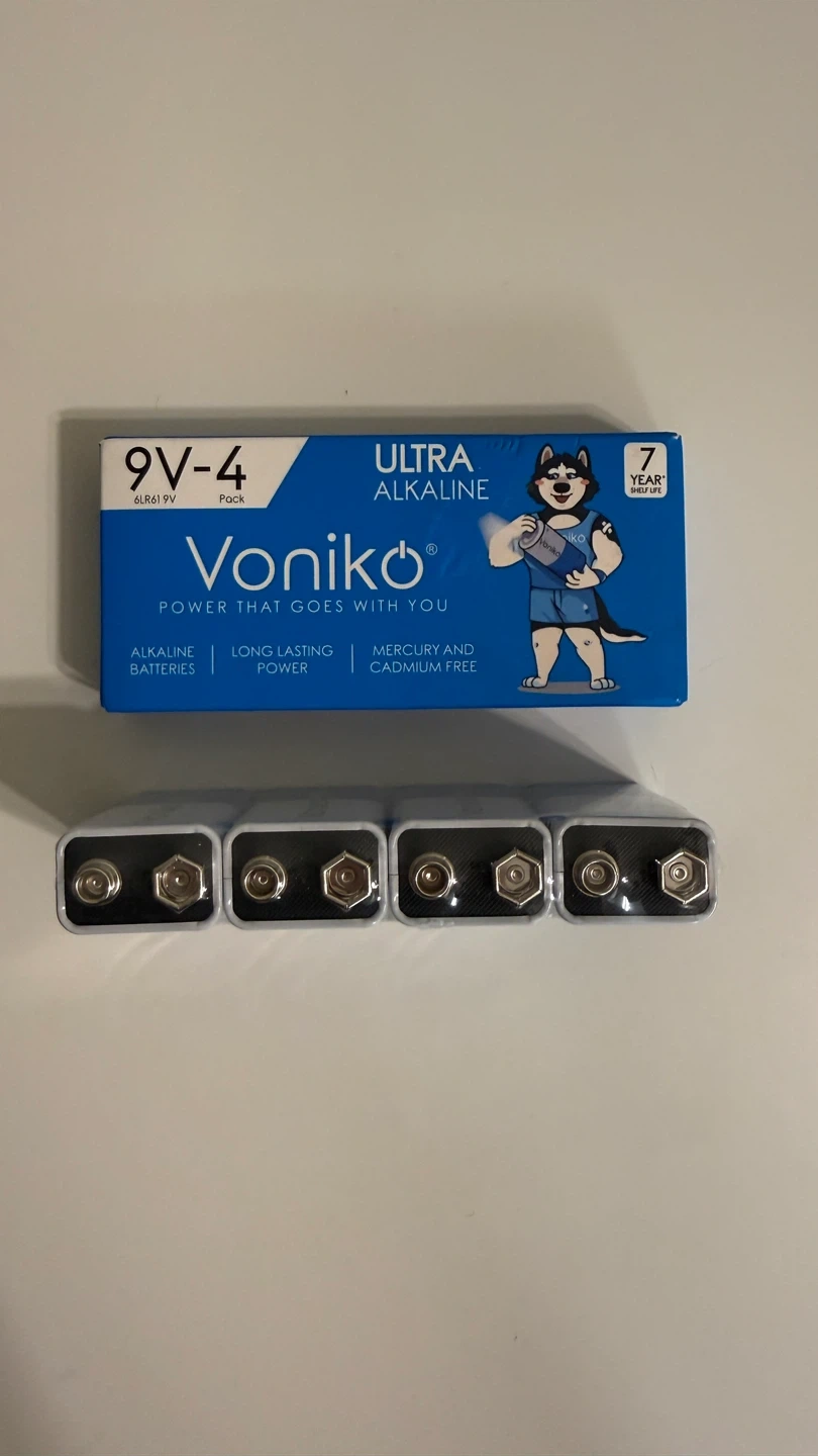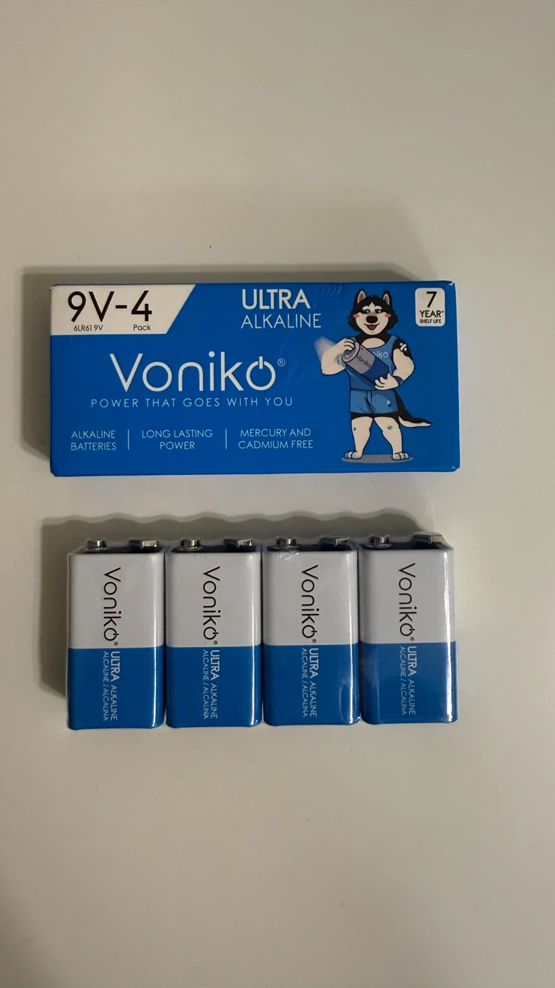 This is a 4-pack of Voniko 9V Ultra Alkaline batteries. They're mercury and cadmium-free for a longer-lasting power supply. Perfect for devices that need a reliable 9V battery.