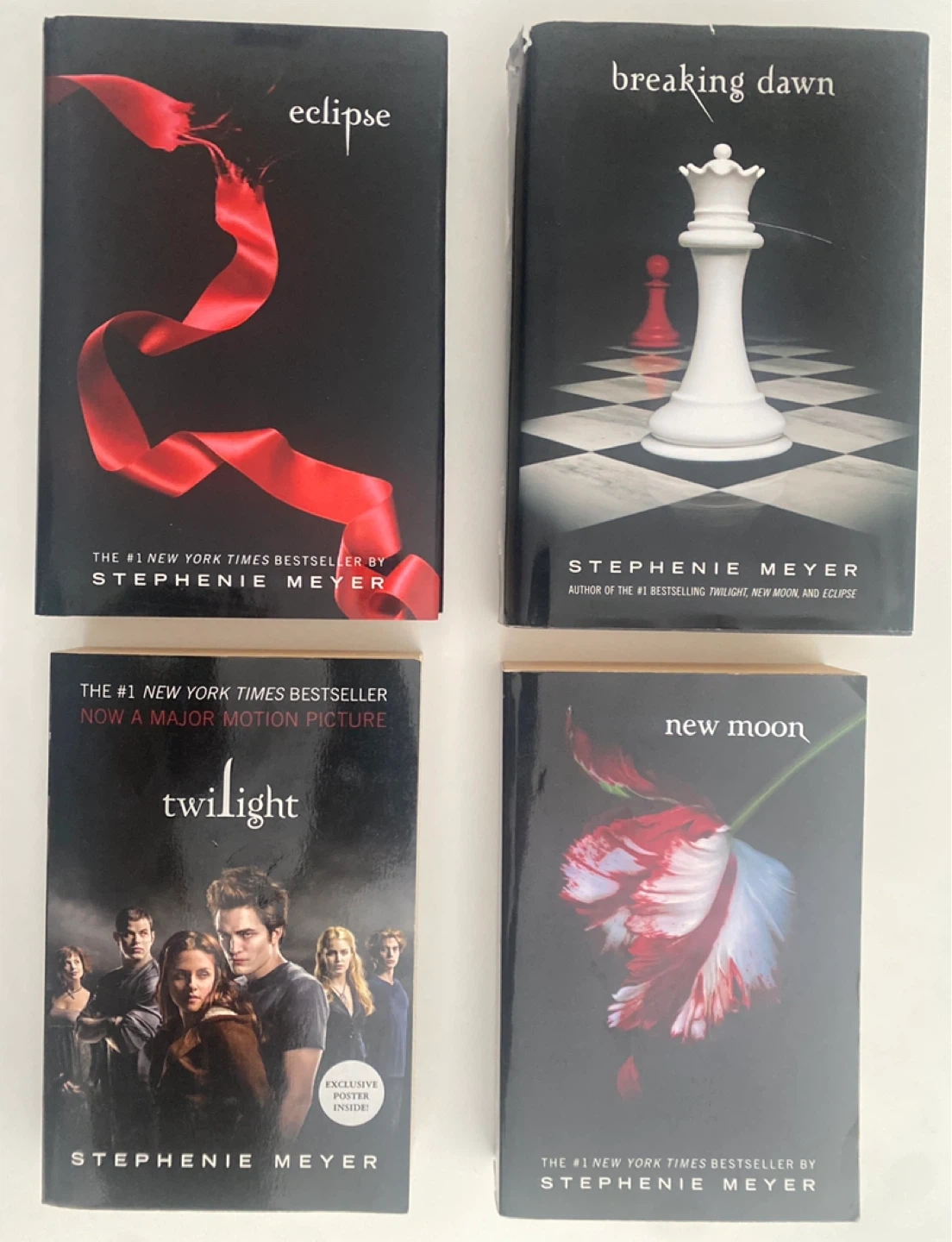 Selling the complete Twilight Saga book series! Includes Twilight, New Moon, Eclipse, and Breaking Dawn. All books are in great condition and ready for a new reader. Perfect for fans of the series or anyone looking for a captivating read