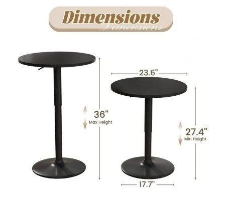 New - Black Round Bar Table - Adjustable Height