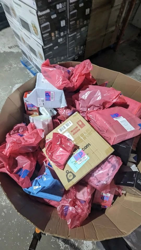 Wholesale liquidation pallet filled with assorted items in original packaging. Perfect for resellers, flea markets, or anyone looking for a bulk deal. Includes a variety of products