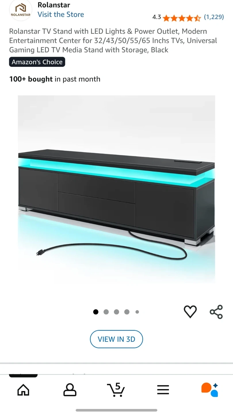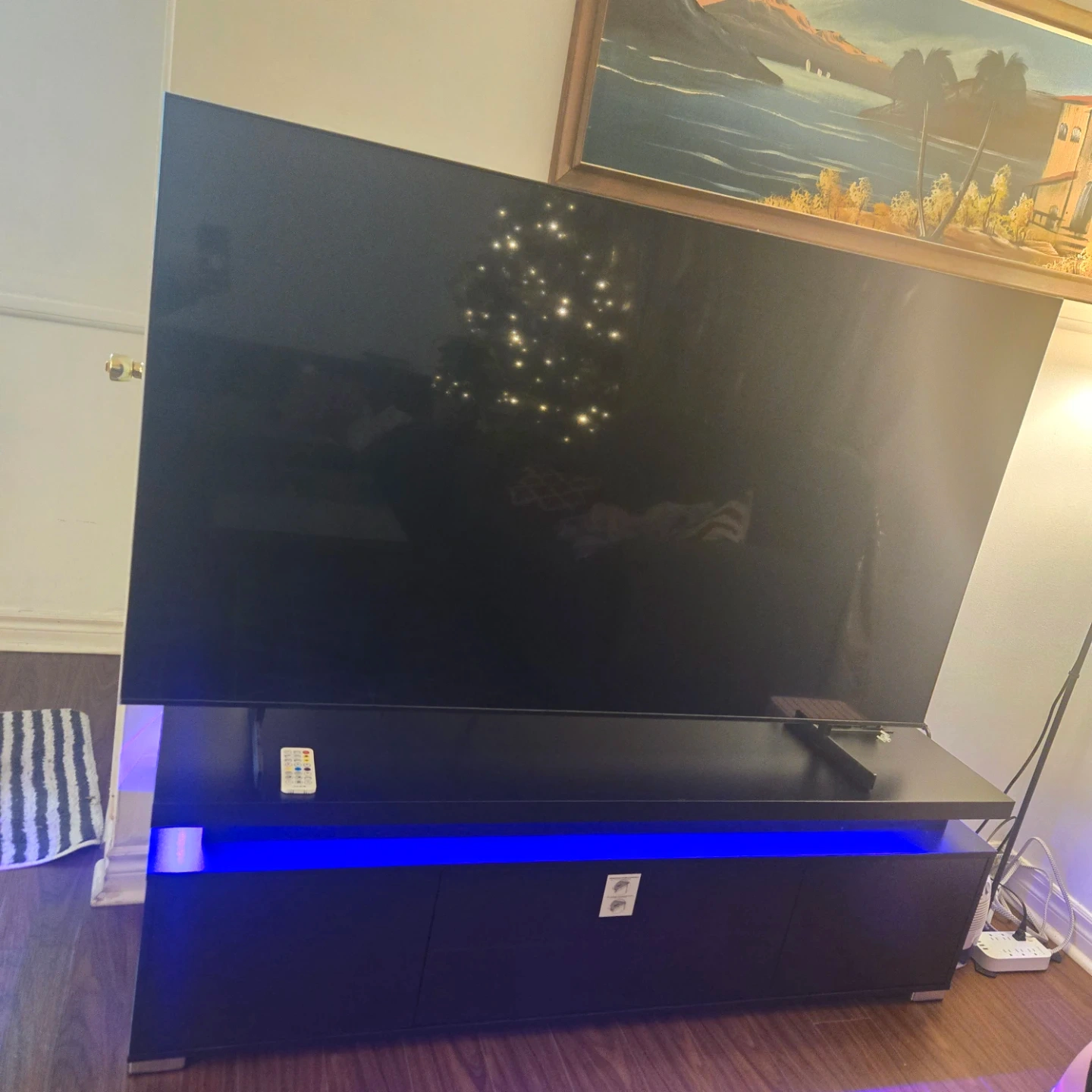 Selling a Rolanstar TV stand in black! It features LED lights, adding a modern touch to your entertainment setup. Perfect for TVs ranging from 32 to 65 inches. It also has a power outlet and storage space for your media devices. Check price in Amazon. Still in the box.