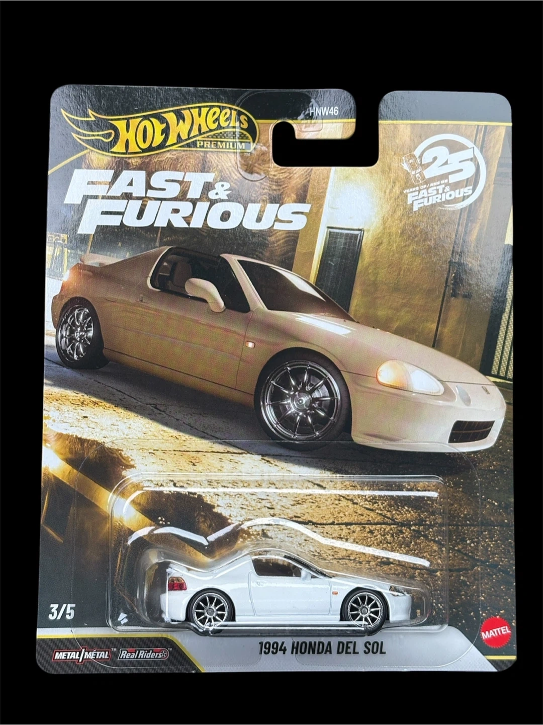 Hot Wheels Premium die-cast model of a 1994 Honda Del Sol. It's part of the Fast & Furious collection.