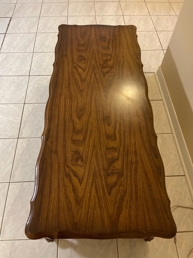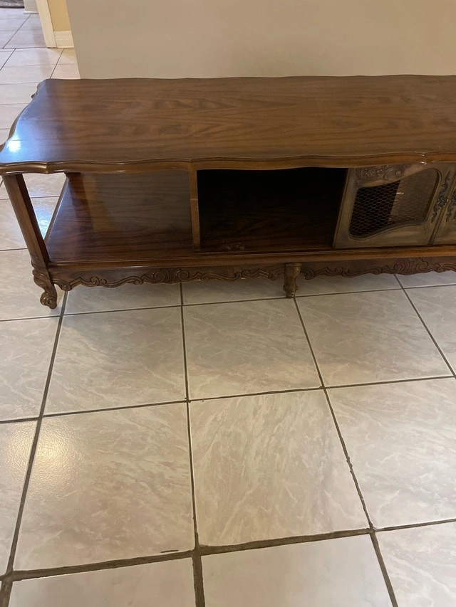 Add a touch of vintage charm to your living space with this elegant wood coffee table, featuring a bottom shelf for extra storage. It's in good condition and ready to be the centerpiece of your living room. I've taken good care of it, though it is a vintage item, so please appreciate its character. Material: Wood, Style: Vintage, Features: Bottom shelf for storage. This coffee table is eagerly awaiting a new home. If the ad is still up, then yes, it is still available. Cash accepted.