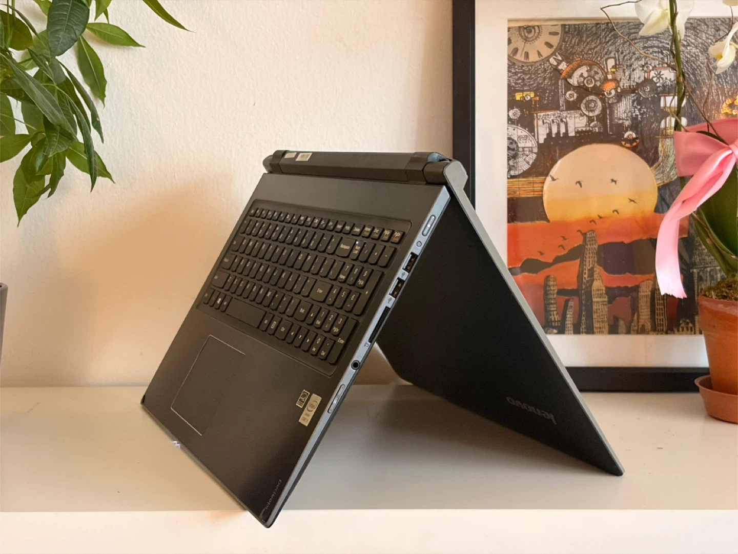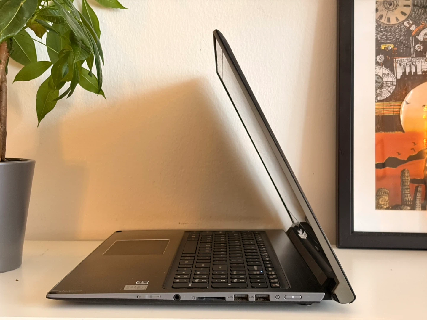 This is a Lenovo IdeaPad laptop. It features a full keyboard and trackpad. It's a reliable machine for everyday tasks.