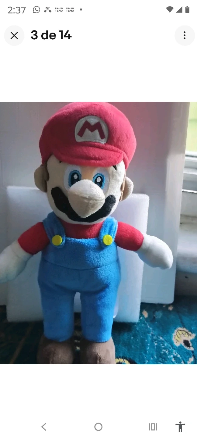 This is a plush toy of Super Mario. It's made of soft material and has the classic red hat and blue overalls. It's a fun collectible for fans!