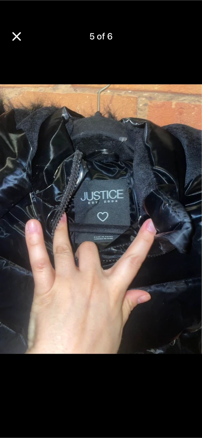 Justice Shiny Black Puffer Jacket with Fur Hood
