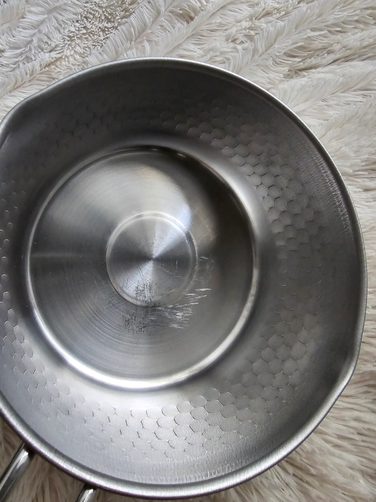 15cm-----used. There is a bit scratching mark on the interior bottom because I accidentally burned the food once. That didn't leave harsh scratching damage on the surface, just some mark from the wooden spoon used for scratching.