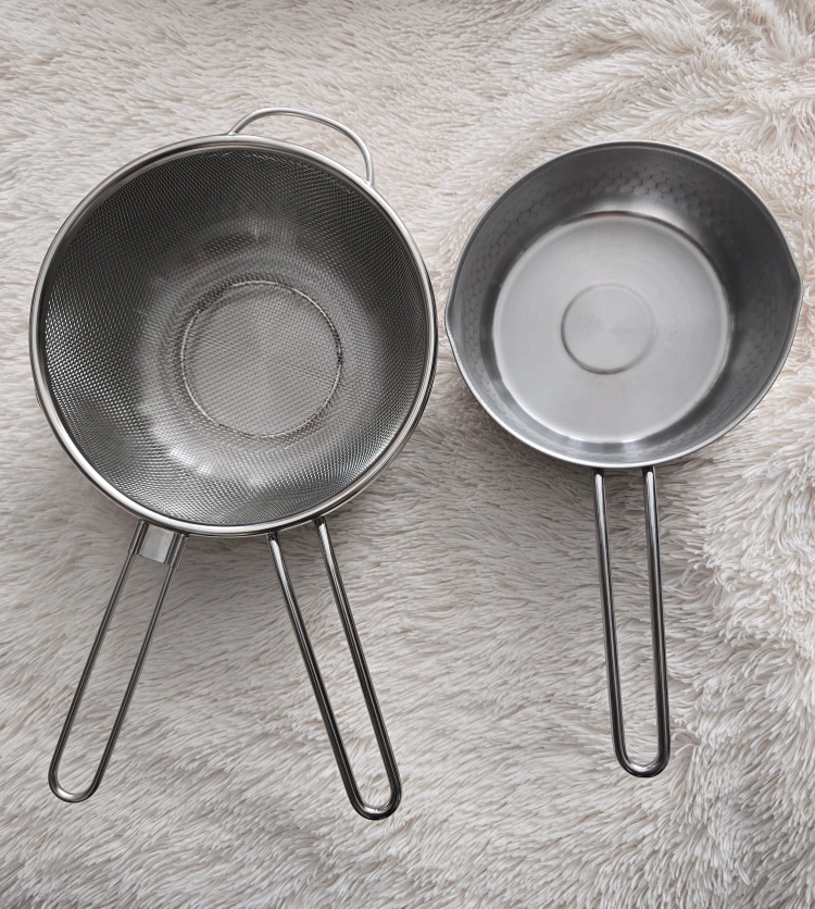 Stainless Steel Pots x2 and strainer 18cm /15cm