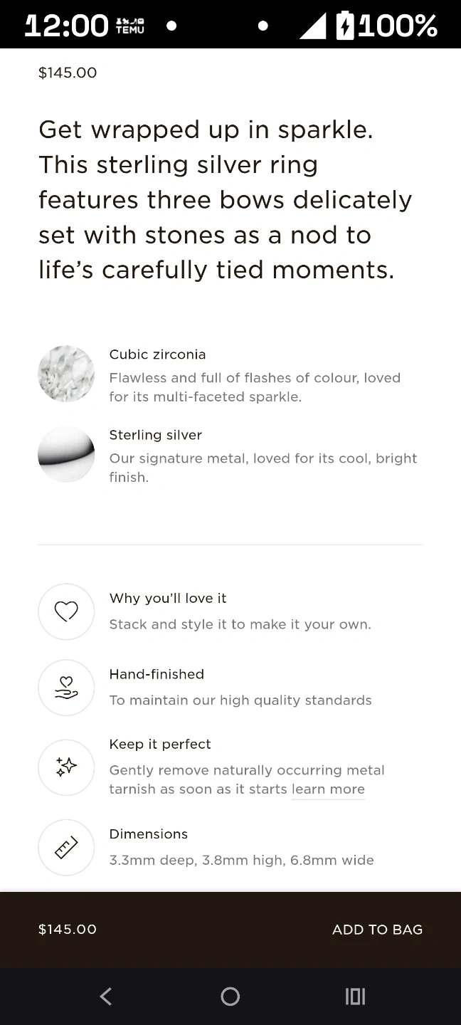 Retails for $145 plus tax on the Pandora website.