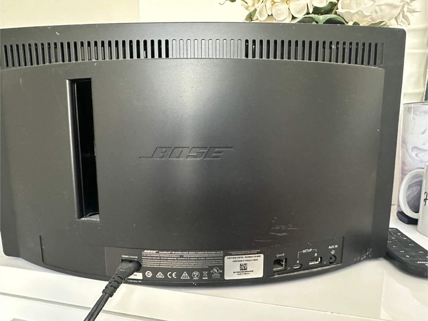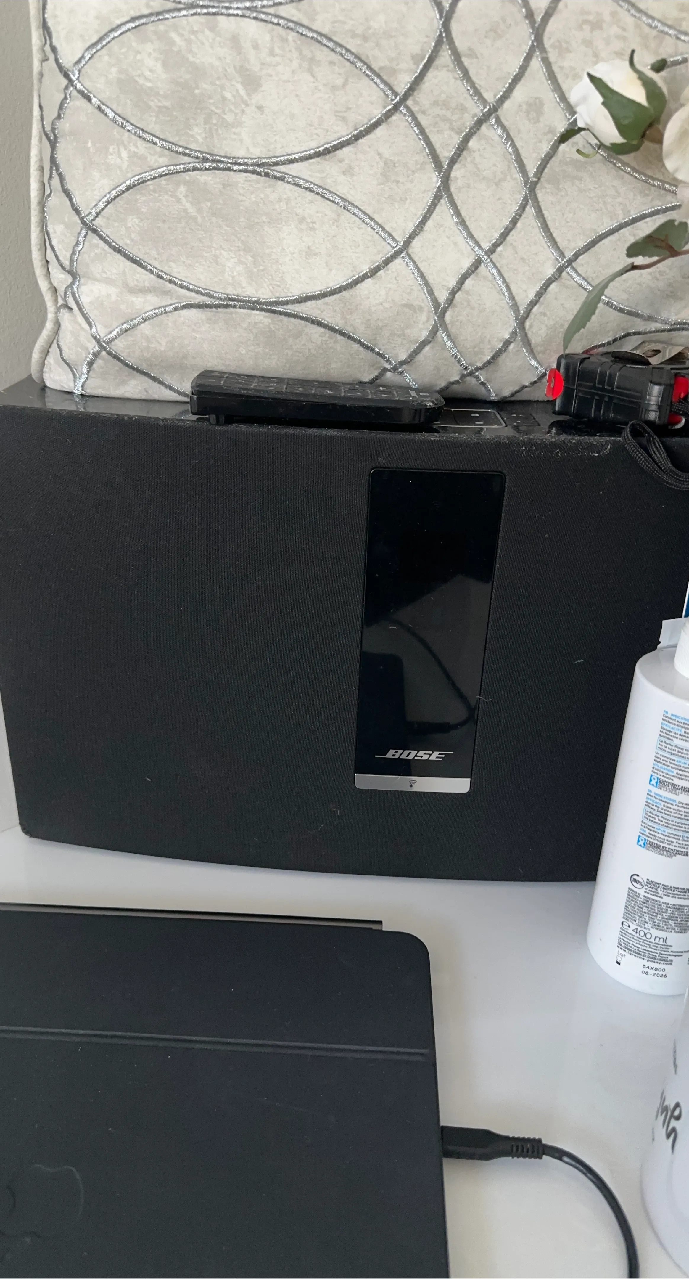 This Bose SoundDock XT Series II music system is in good working condition. It's a black stereo speaker system with an auxiliary input. This unit is great for playing music from compatible devices.