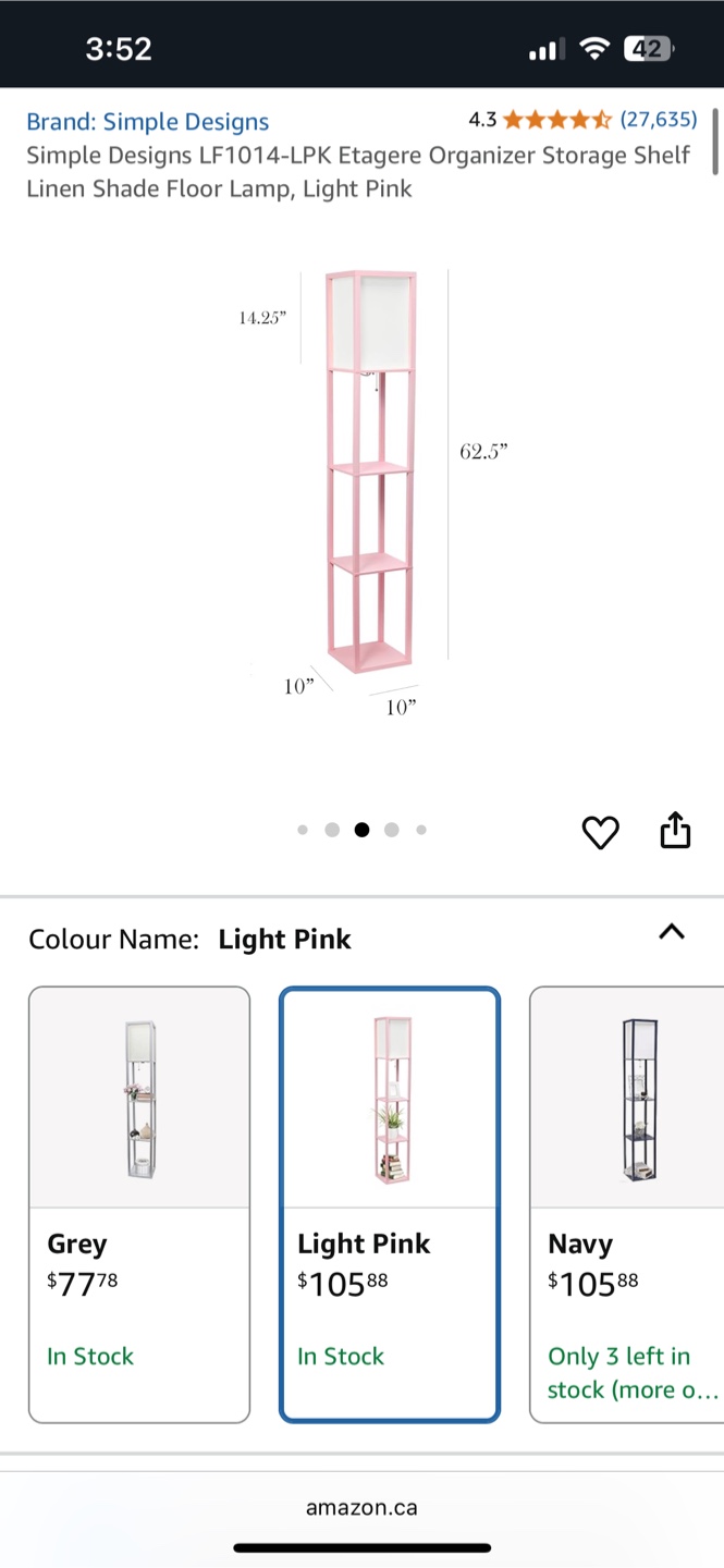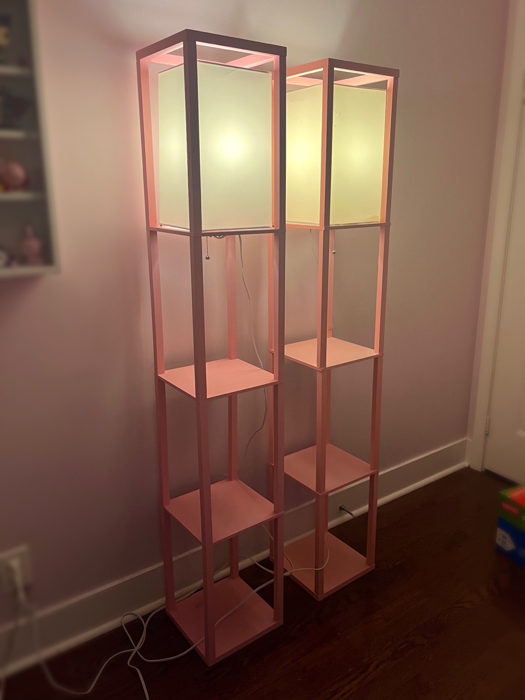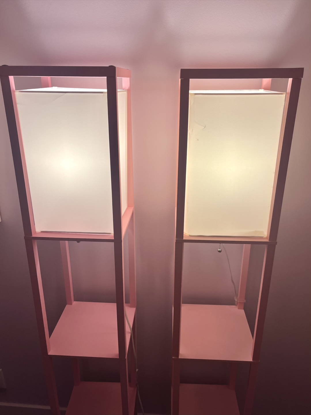 2 Pink floor lamps with shelves, originally purchased from Amazon.