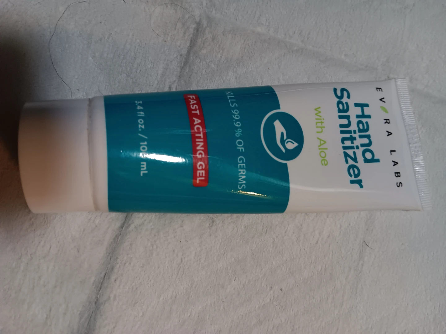 Selling a tube of Evra Labs Hand Sanitizer with Aloe. It's a fast-acting gel that kills 99.9% of germs. The tube contains 3.4 fl oz / 100 mL