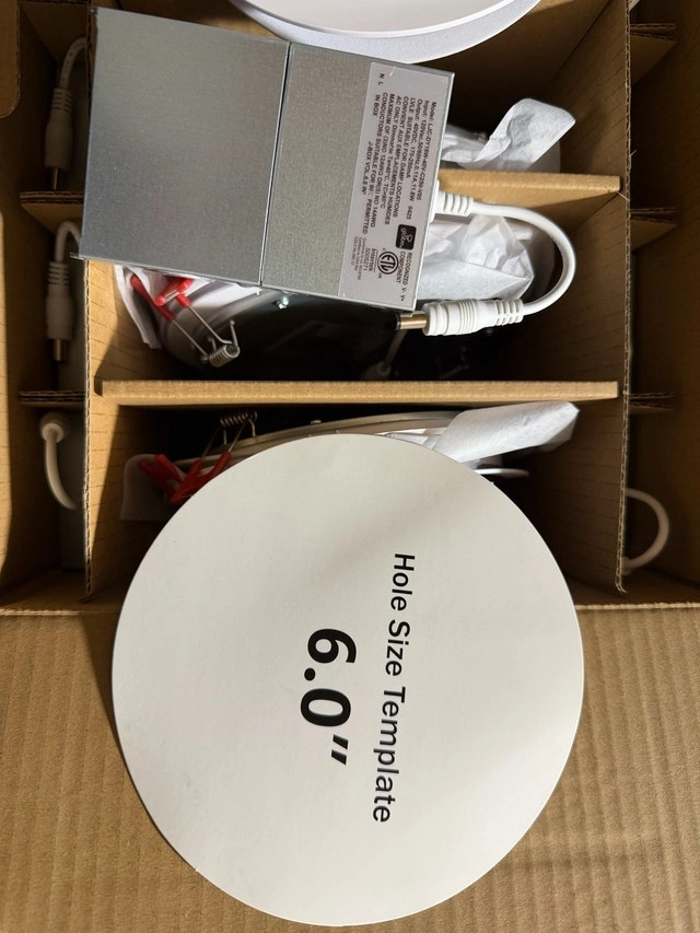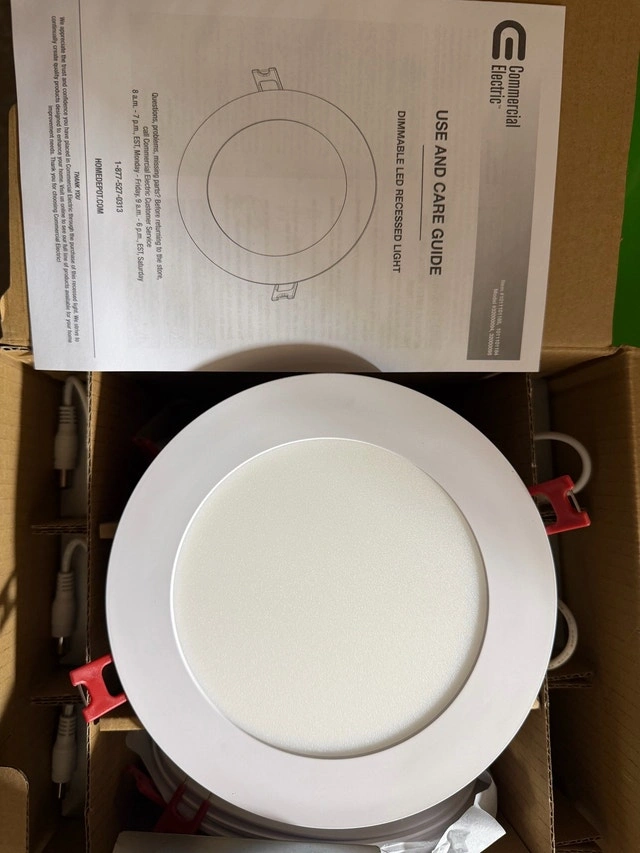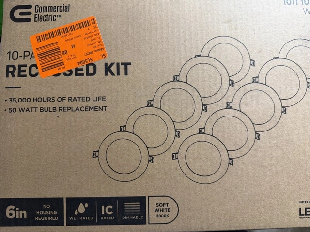 New Commercial Electric Value Series 6” LED Slim Canless Pot Light White (10-Pack). Light specs: 60-Watt equivalent integrated LED using only 10-Watt - 3000K soft white color temperature - 90 CRI for brighter colors; bright 650 Lumen; 35,000-hour, 24-year, lifespan. Thanks.