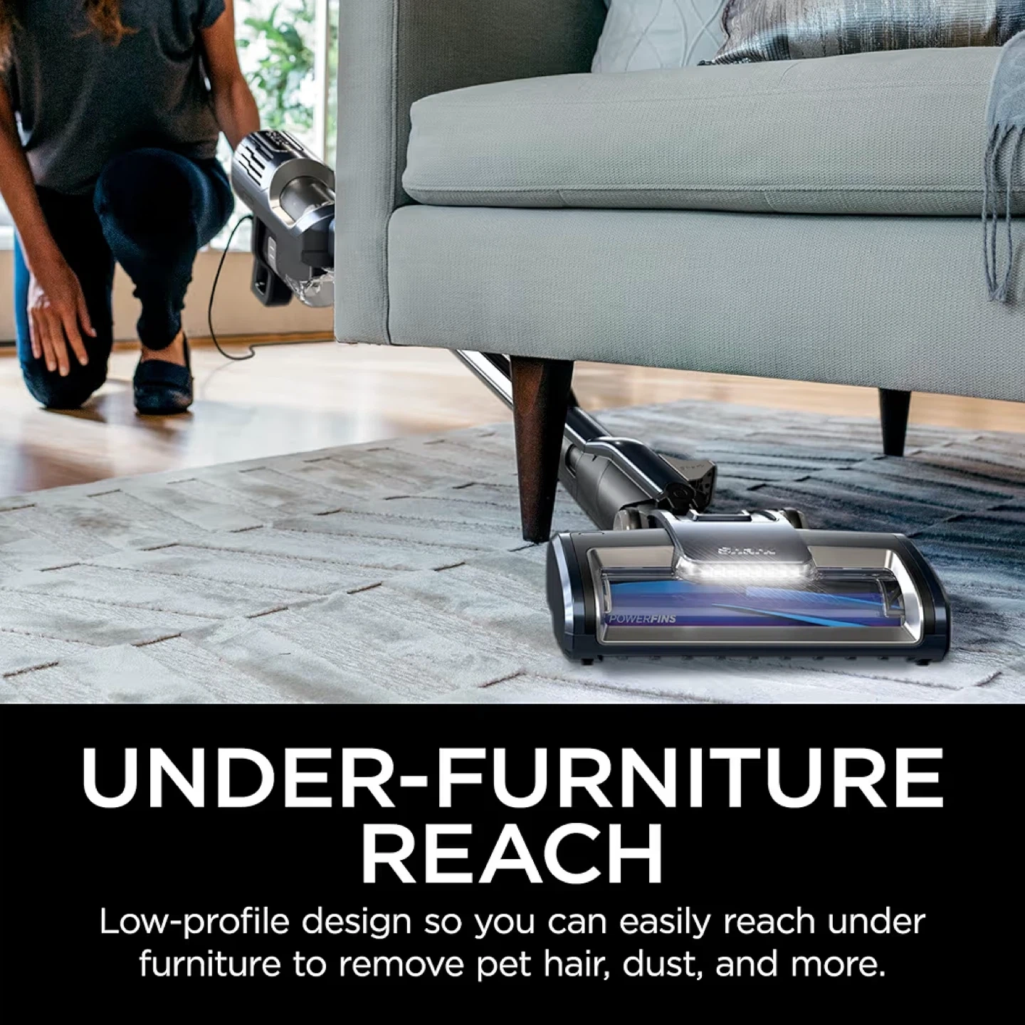• PowerFins™ provide continuous cleaning contact, digging deep into carpets and directly engaging floors.