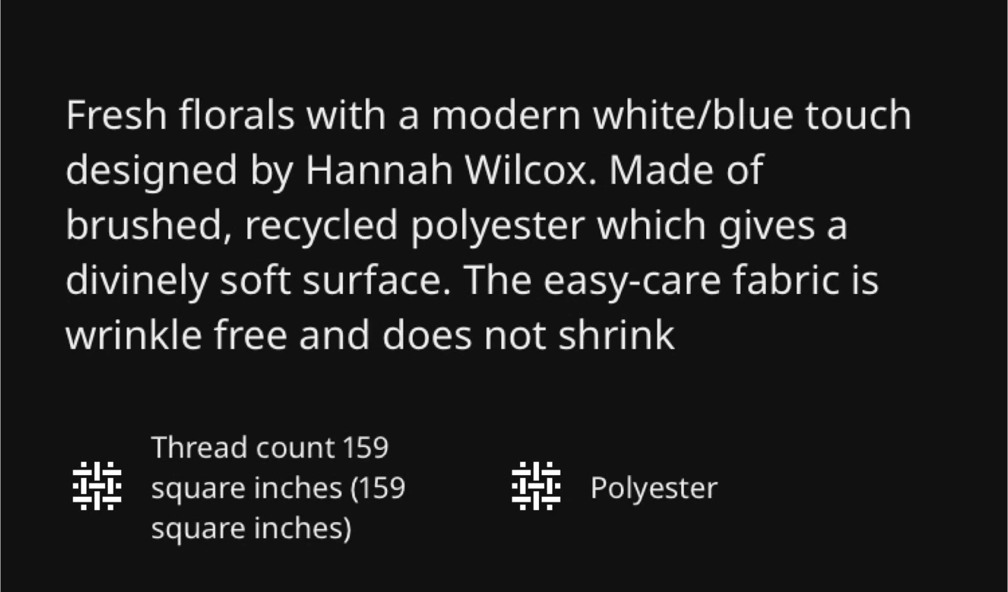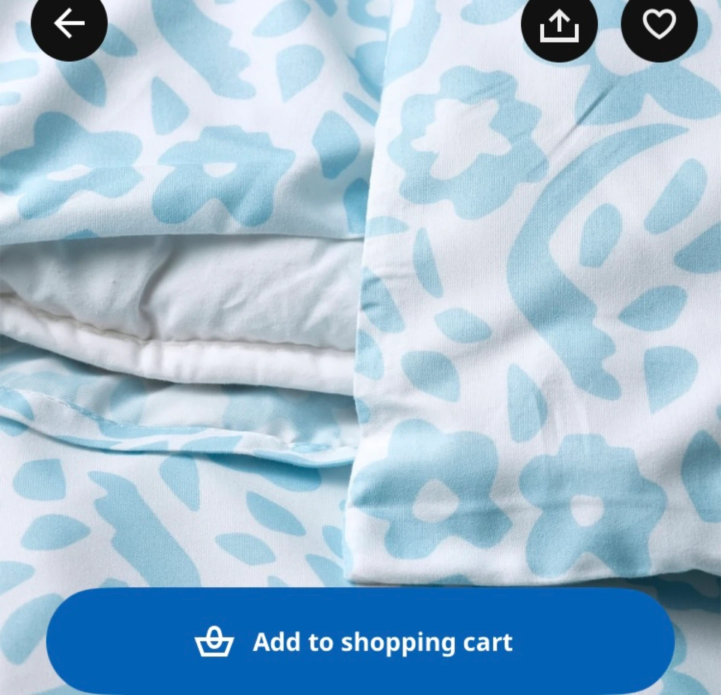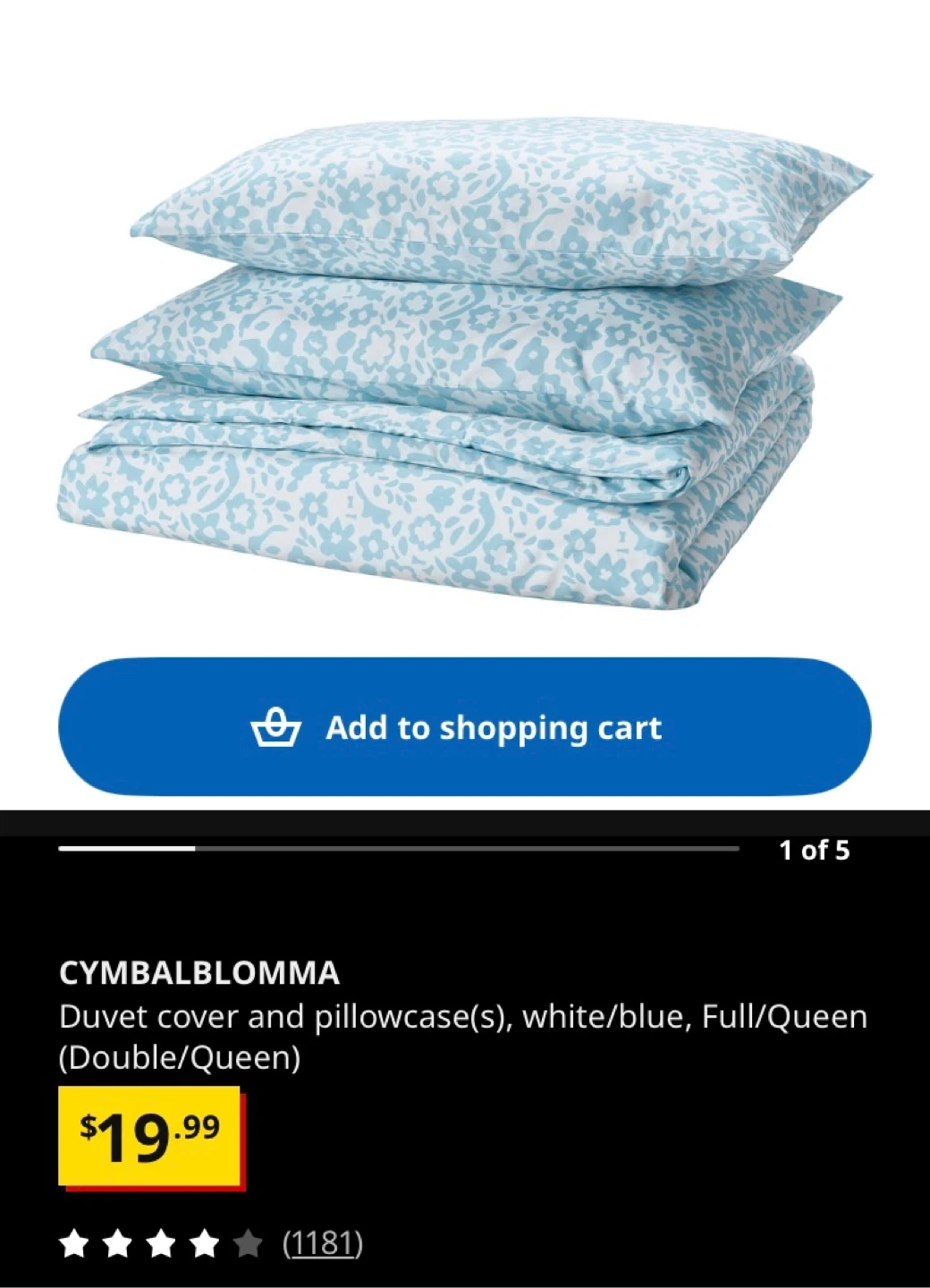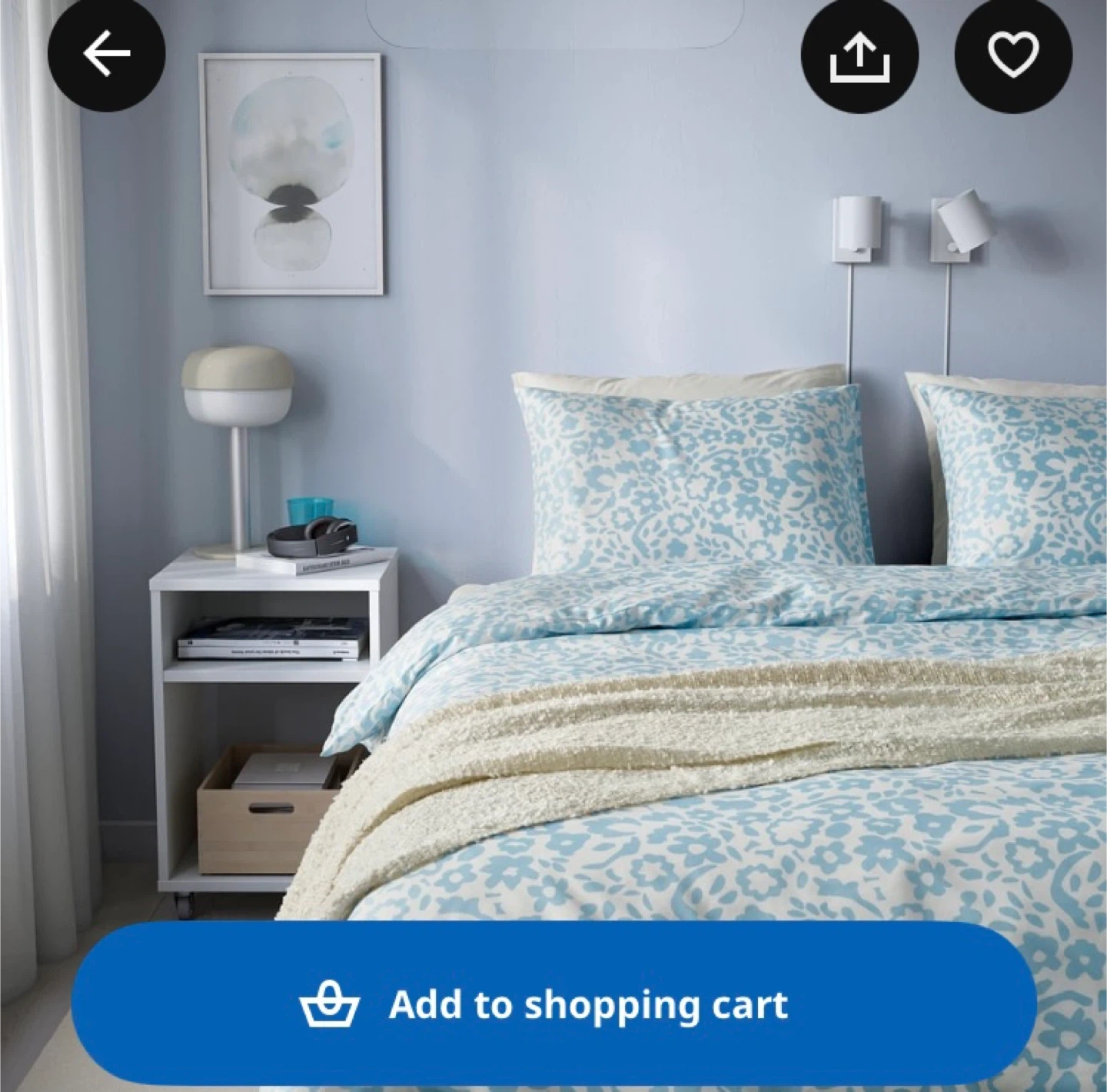 Ikea bed linen. Used, like new. Contains duvet cover and two pillow cases. Queen sized. Selling because I don’t like the material (personal preference). Also, the duvet cover doesn’t have any buttons and buttonholes sewed in. Comes from a smoke free, but cats household.