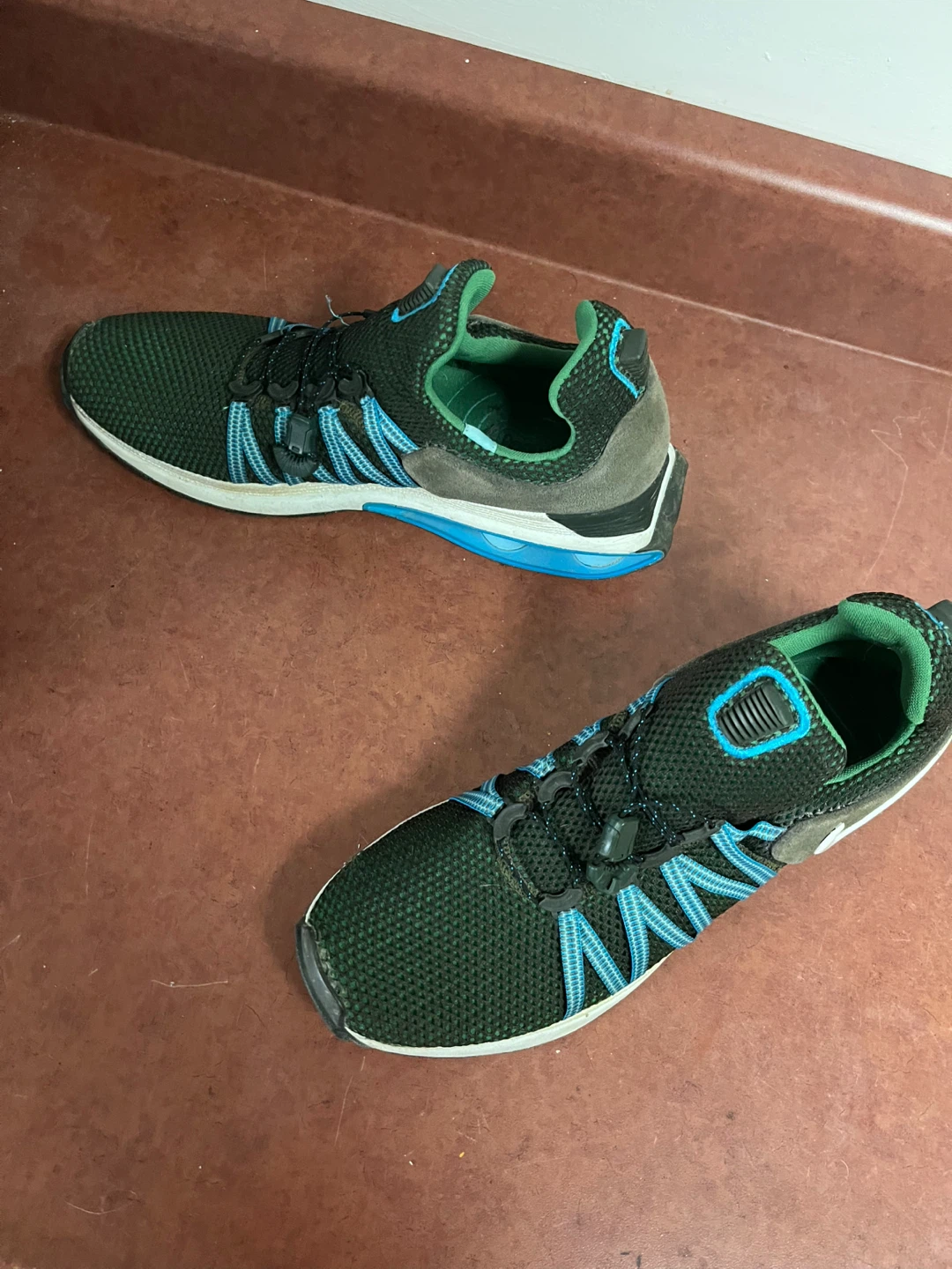 Selling a pair of Nike Shox NZ shoes in size 11.5. They're in good condition and feature a unique design with blue accents and the classic Nike swoosh. Perfect for adding a bit of style to your casual wear!
