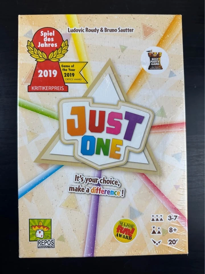 Just One is a cooperative party game where you work together to guess as many mystery words as possible. Try to give a unique clue, as identical clues will be cancelled! A full game is played over 13 rounds. The goal is to get a score as close to 13 as possible.