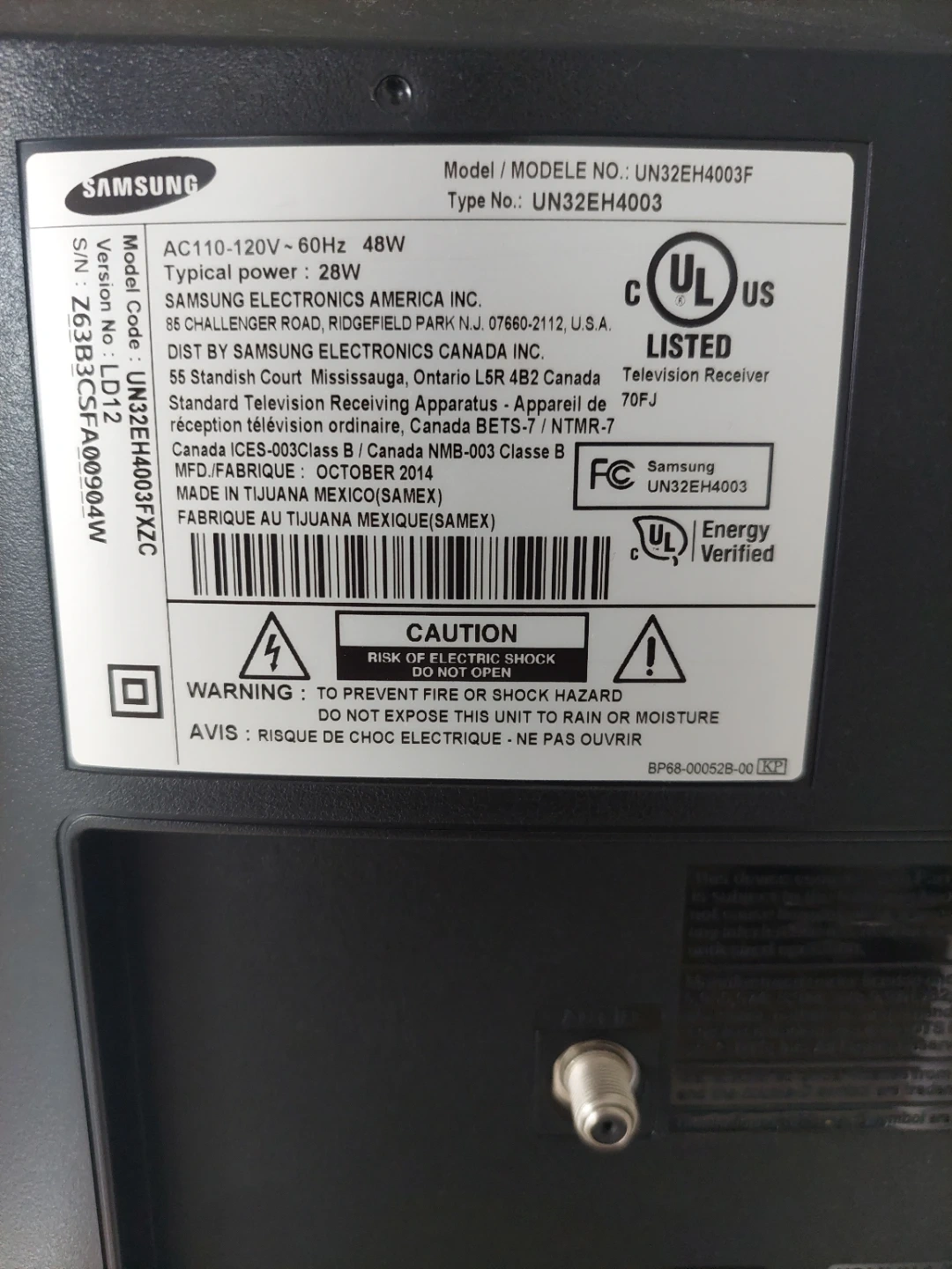 This is a Samsung UN32EH4003F flat-screen TV. It has a 32-inch screen size. Multiple input options including HDMI.