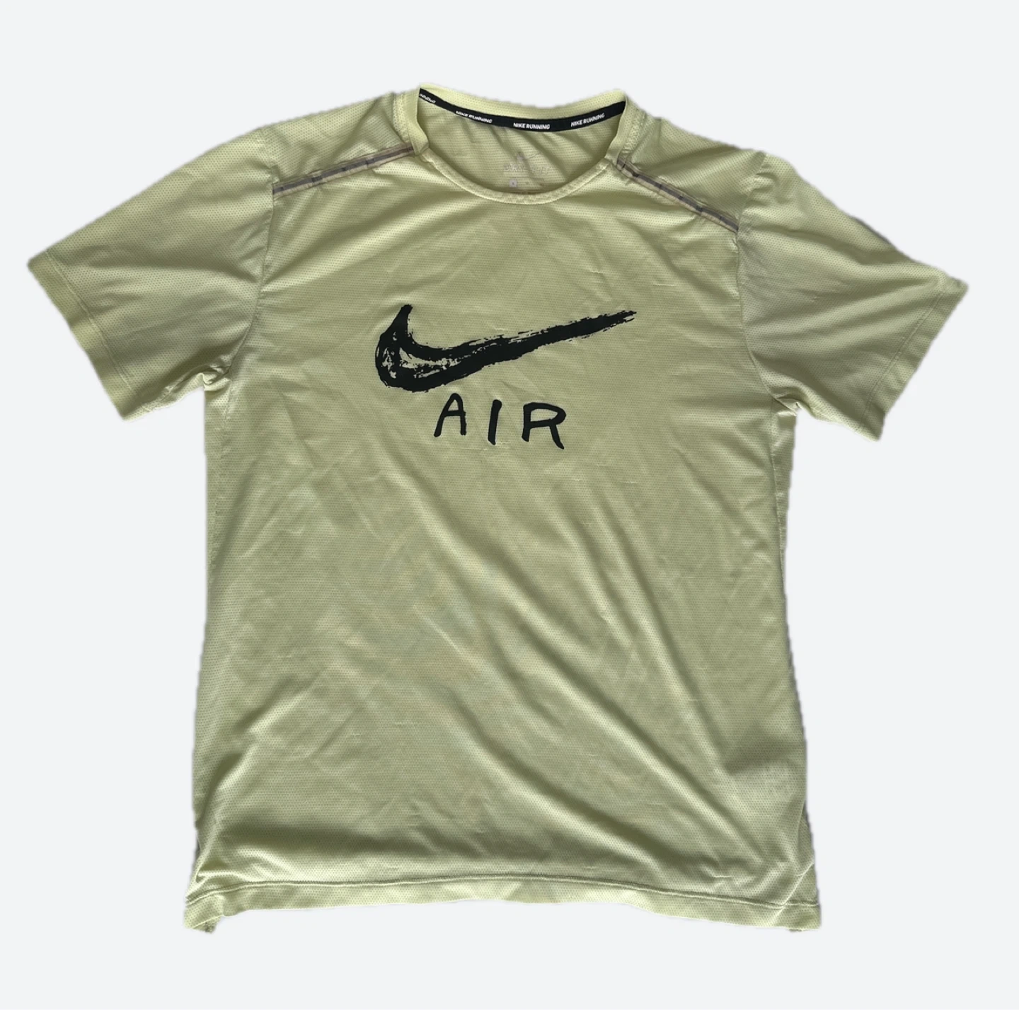 This is a Nike Air running t-shirt. It's a lightweight, breathable fabric perfect for athletic activities. It features a bold Nike Swoosh and "AIR" graphic.