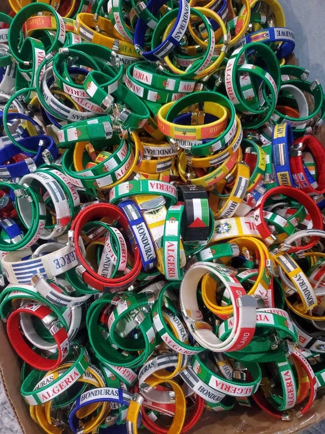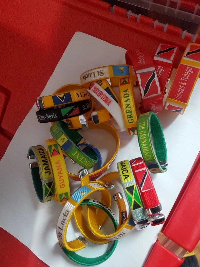Add a touch of global flair to your wrist with these vibrant flag bracelets! These bracelets feature the flags of various countries, perfect for collectors or anyone wanting to show off their international spirit. Each bracelet is made with colourful woven fabric and has a snap closure. They are designed to fit comfortably on most wrists. 1 for $5 or 3 for $10. Cash accepted.
