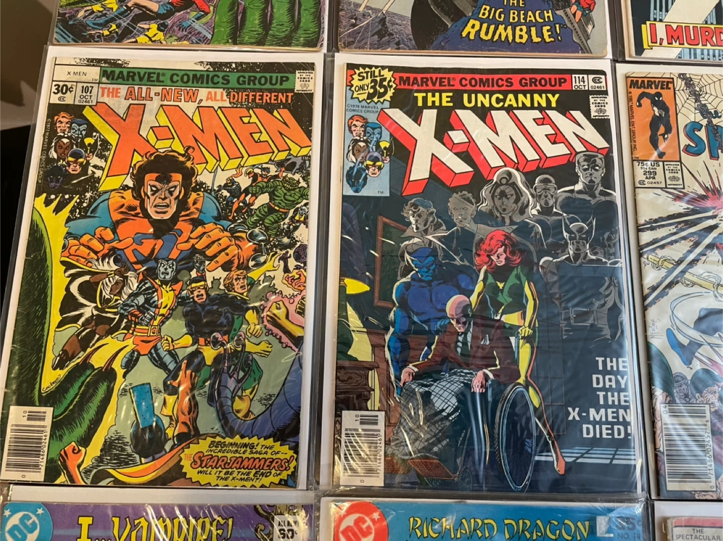 Collection of Marvel Comics issues featuring popular characters. Includes The Uncanny X-Men, The Avengers, The Amazing Spider-Man, and others. All comics appear to be from the 1980s. Great for collectors! 380$
