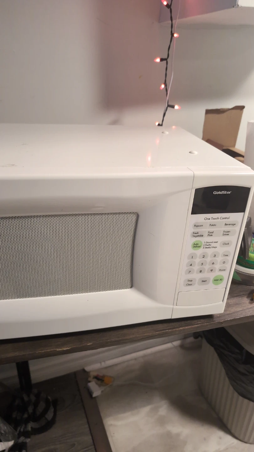 Selling a GoldStar microwave in white. It's in good working condition and ready for a new kitchen! Perfect for quick meals and reheating leftovers