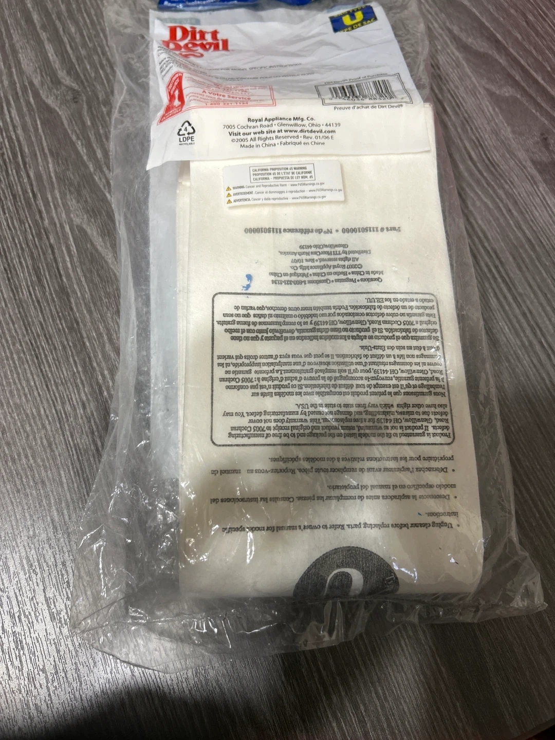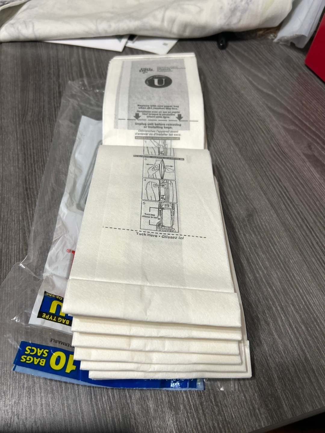 Brand new Dirt Devil Type U replacement vacuum cleaner bags. This package contains 9 genuine parts. Keep your home clean with these reliable vacuum bags!