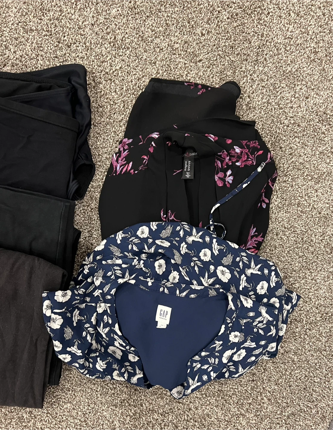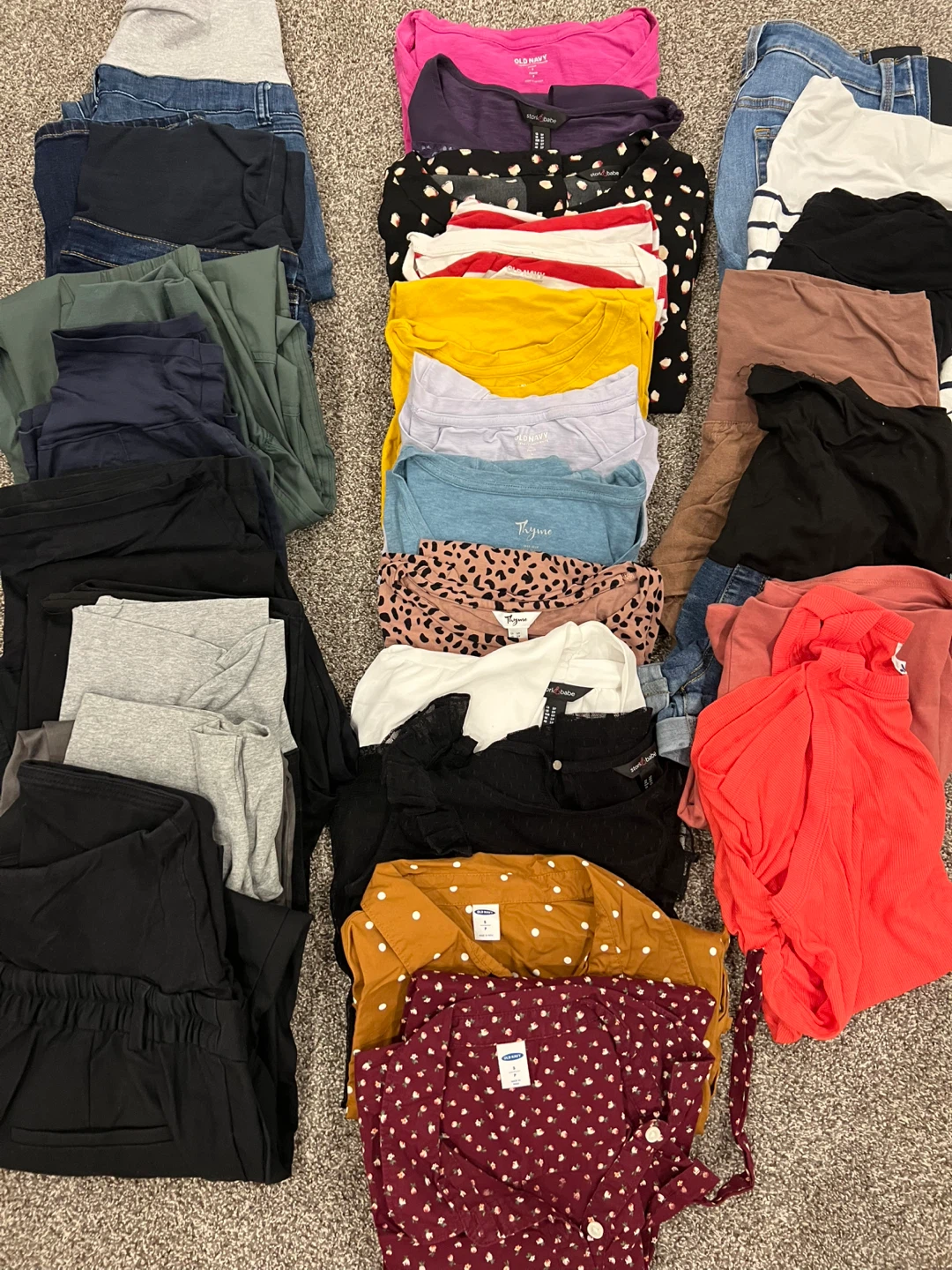 Here's a mixed lot of maternity clothing items from brands like Gap, Old Navy, and stork & Bebe.