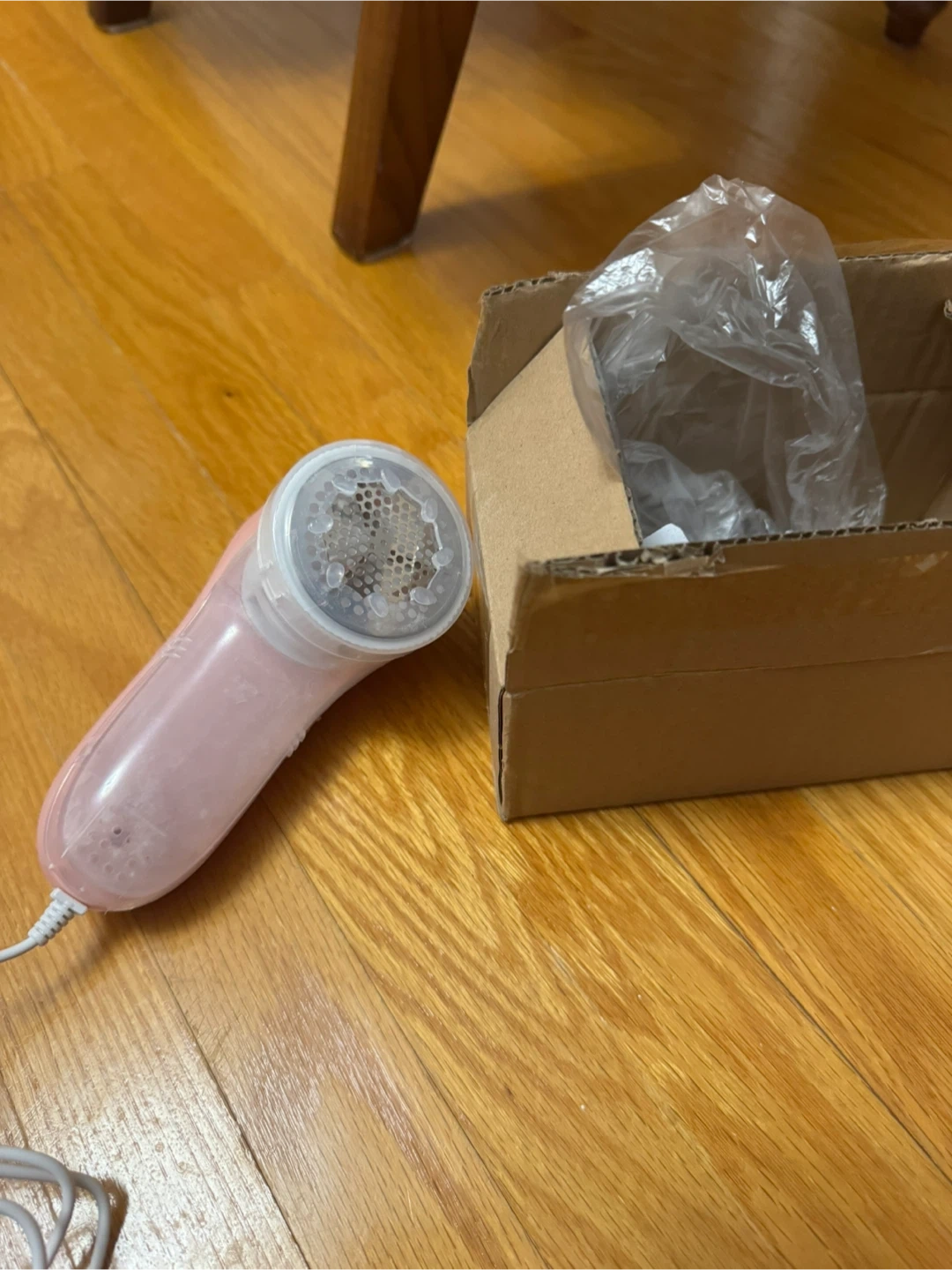 This pink fabric shaver helps remove lint and fuzz from your clothing. It's powered by an included cord. Keep your sweaters and other garments looking fresh!