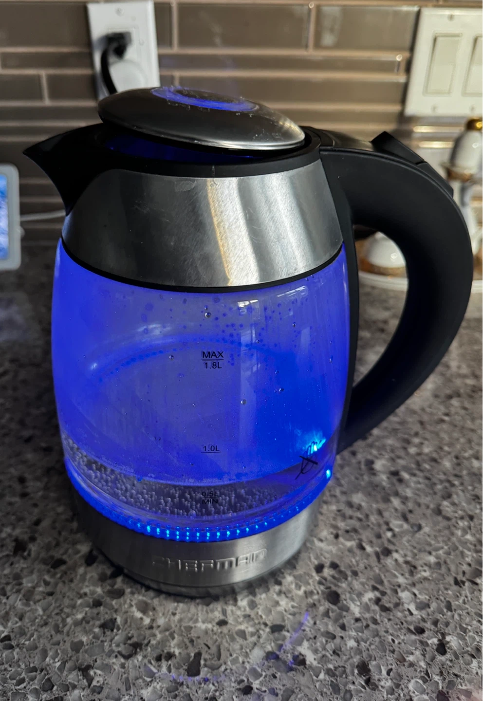 Selling a Chefman Custom-Temp 1.8L glass Kettle. With the LED light. It's cover can't close properly otherwise working properly.