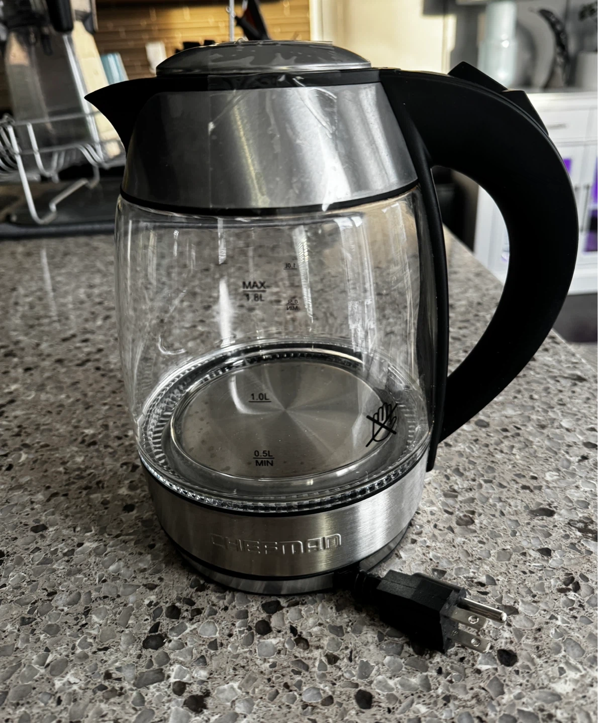 Selling a Chefman Custom-Temp 1.8L glass Kettle. With the LED light. It's cover can't close properly otherwise working properly.