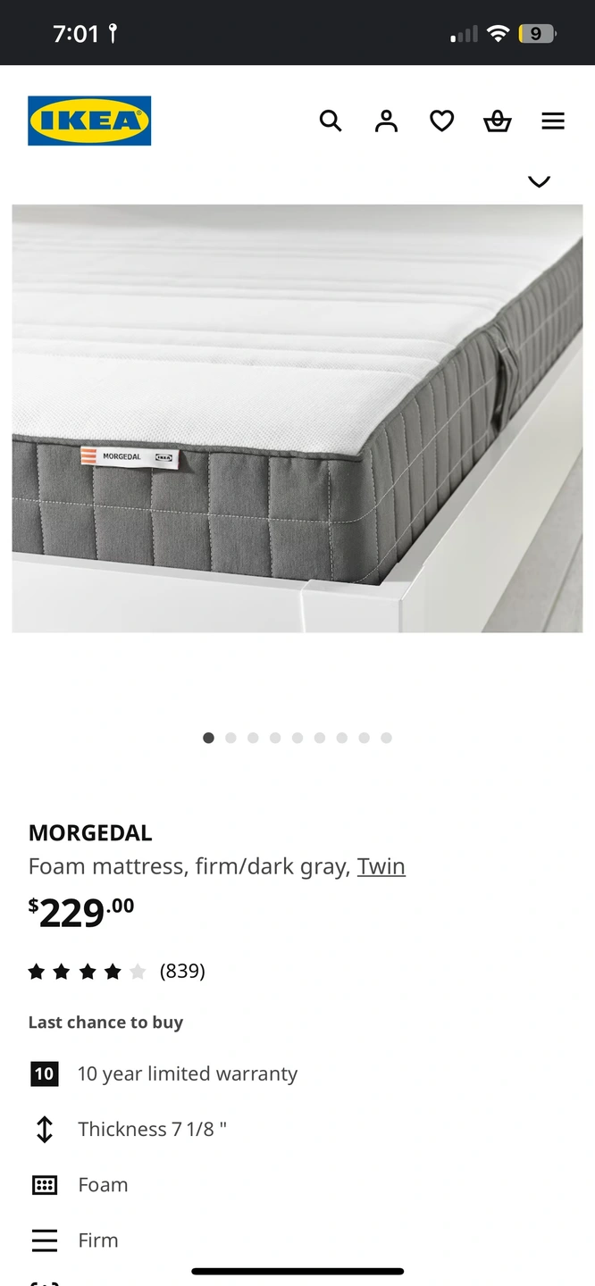 IKEA MORGEDAL Foam Mattress - Firm (Twin) - Almost New