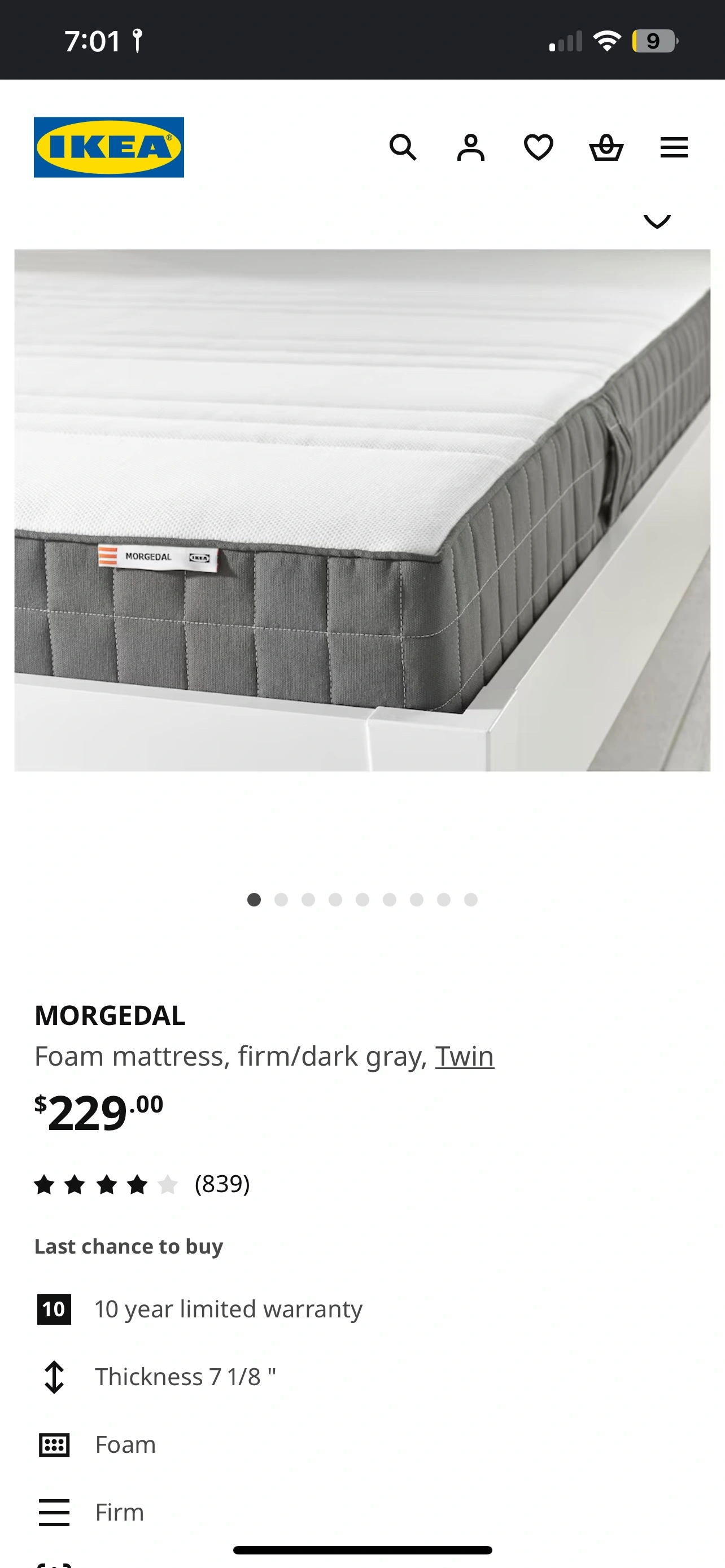 IKEA MORGEDAL Foam Mattress - Firm (Twin) - Almost New