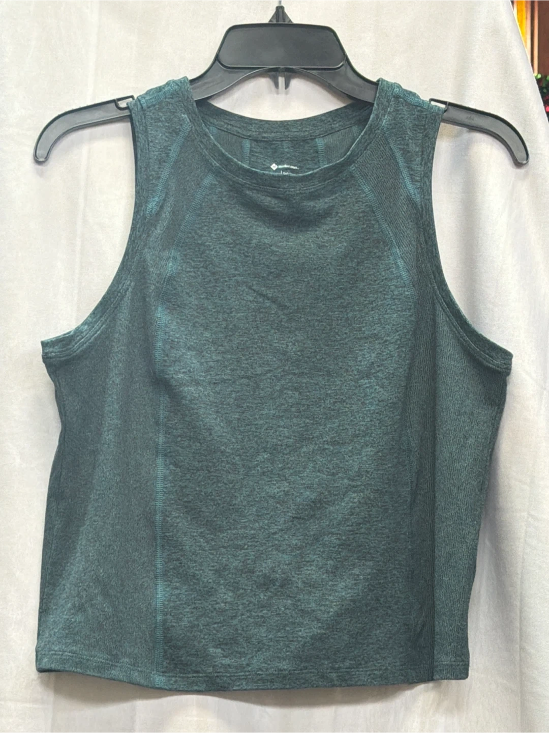 Members mark women's sleeveless tank top in a marled dark teal color. It's a comfortable and breathable option for workouts or casual wear. Made from a polyester blend fabric for durability and ease of care.