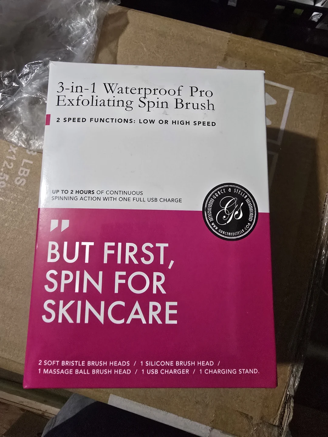 Grace & Stella 3-in-1 Waterproof Pro Exfoliating Spin Brush Set