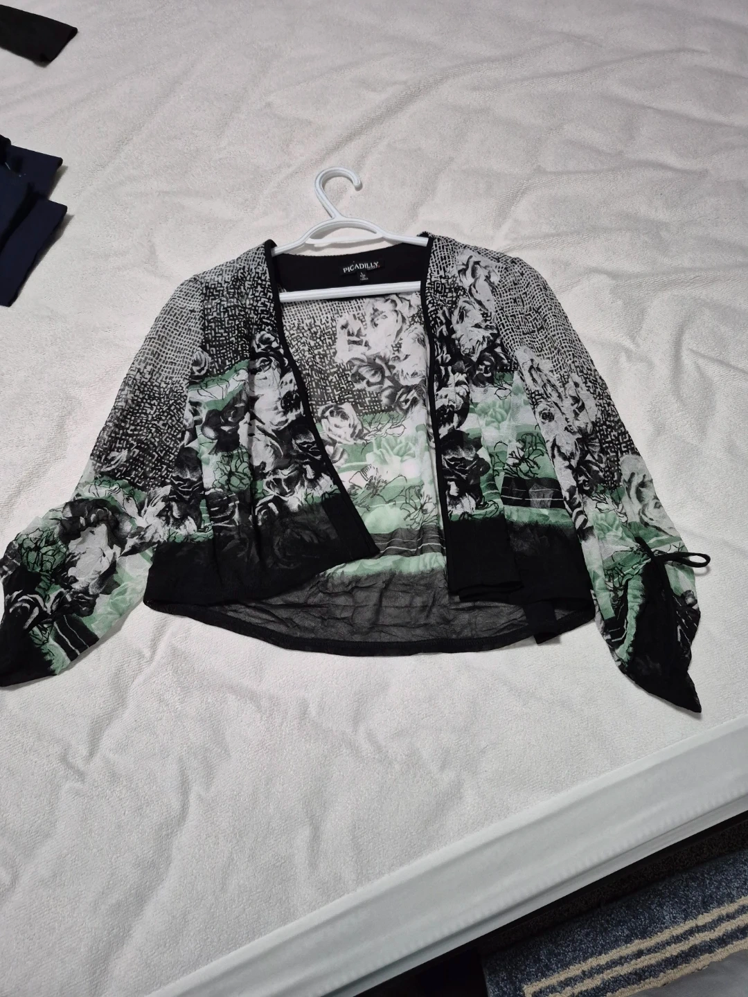 Picadilly blouse featuring a black and green floral pattern. It's a size large and in great condition!