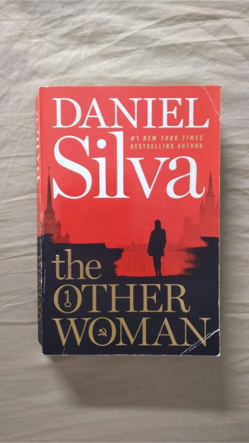 This is 'The Other Woman' by Daniel Silva. It's a thriller novel from a #1 New York Times bestselling author. This book is a great read for fans of espionage and suspense!