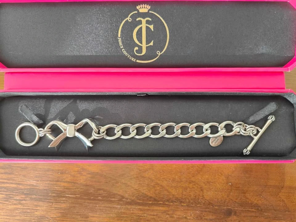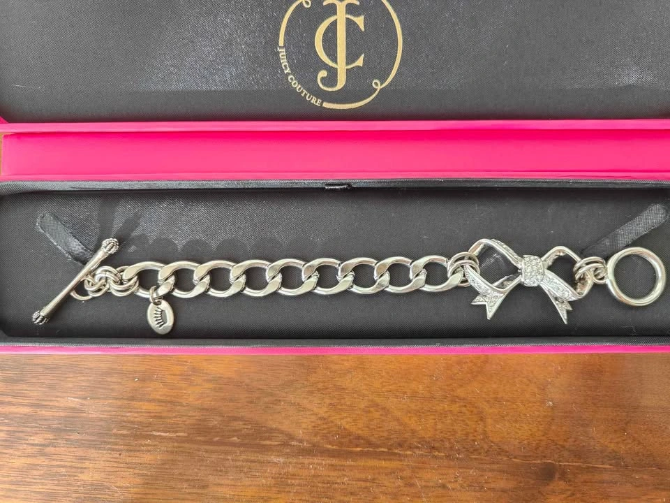 Brand new Juicy Couture bow bracelet with original box. Impulsive purchase and never used. Full length 7"/18cm