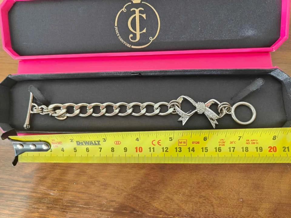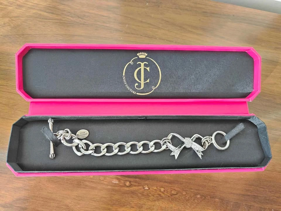 Brand new Juicy Couture bow bracelet with original box. Impulsive purchase and never used. Full length 7"/18cm